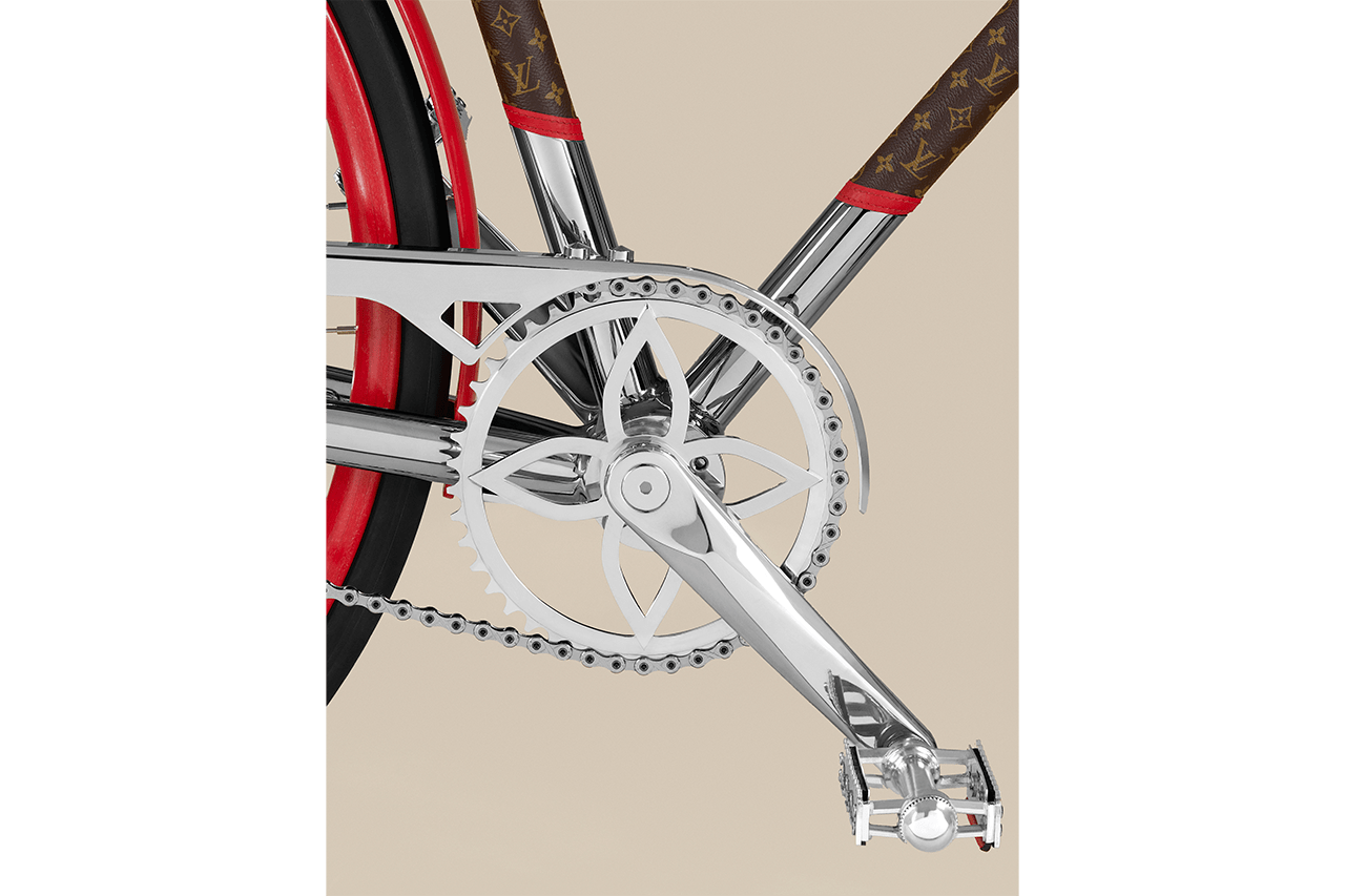 Khung xe làm từ thép tráng men và mạ crôm được kéo căng và làm nhẹ. Nhờ đó, trọng lượng xe giảm thiểu đáng kể. Nhưng bù lại, chiếc xe đạp trở nên chắc chắn hơn, đảm bảo những cuốc xe mượt mà. Bộ xích hoa Monogram và khung chữ ‘LV’ lồng ghép tạo sự khác biệt cho thiết kế. Chẳng hạn như ghi đông và giá hành lý bằng da monogram, các vành bánh xe được trang trí bằng gỗ màu đỏ và trắng.