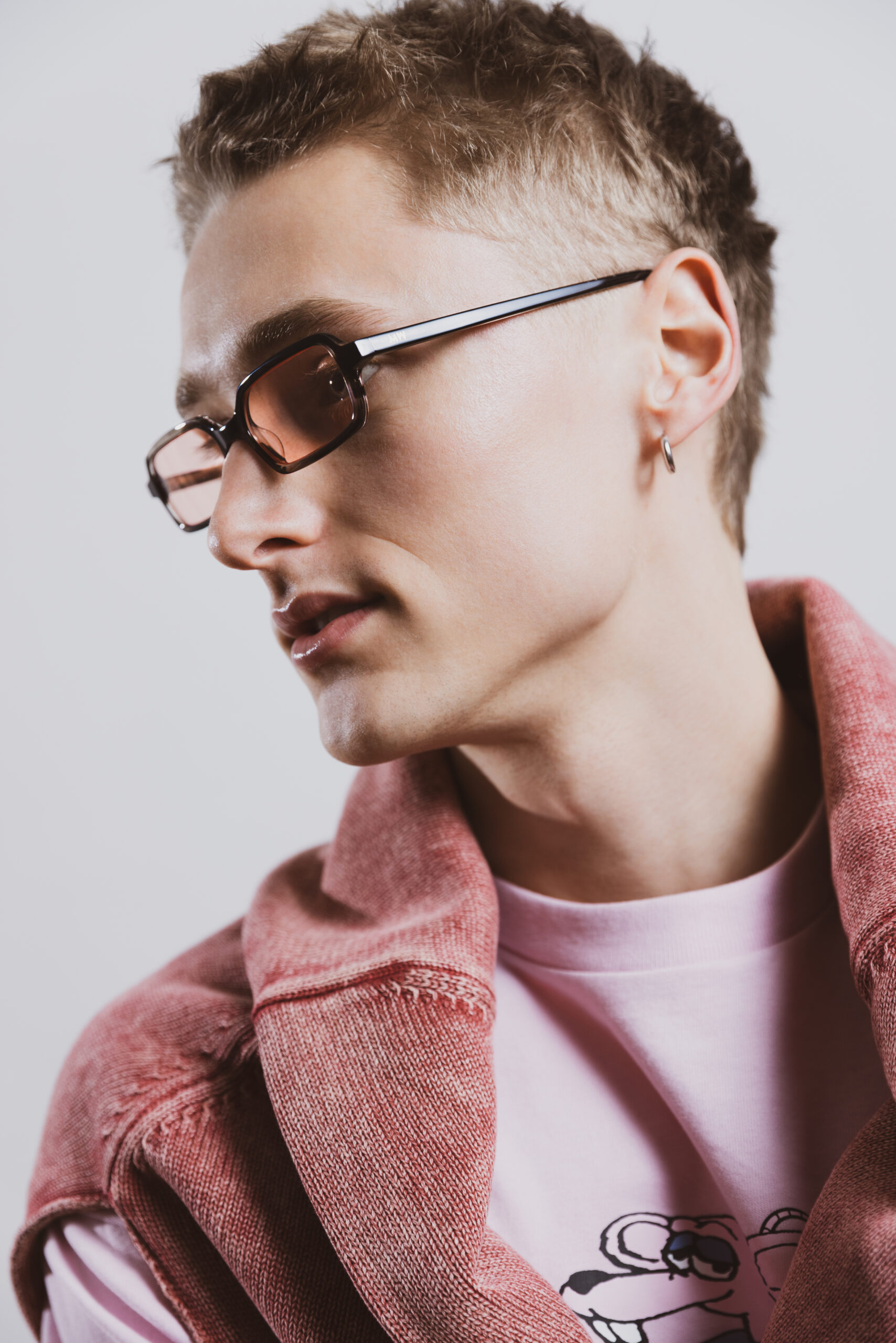 Với kích thước nhỏ gọn và thiết kế chữ nhật tinh tế, thiết kế Milo Optics màu Champagne Clear và tông màu tròng sáng Red tint mang đến vẻ ấm áp rất điện ảnh và hiện đại cho người diện.
