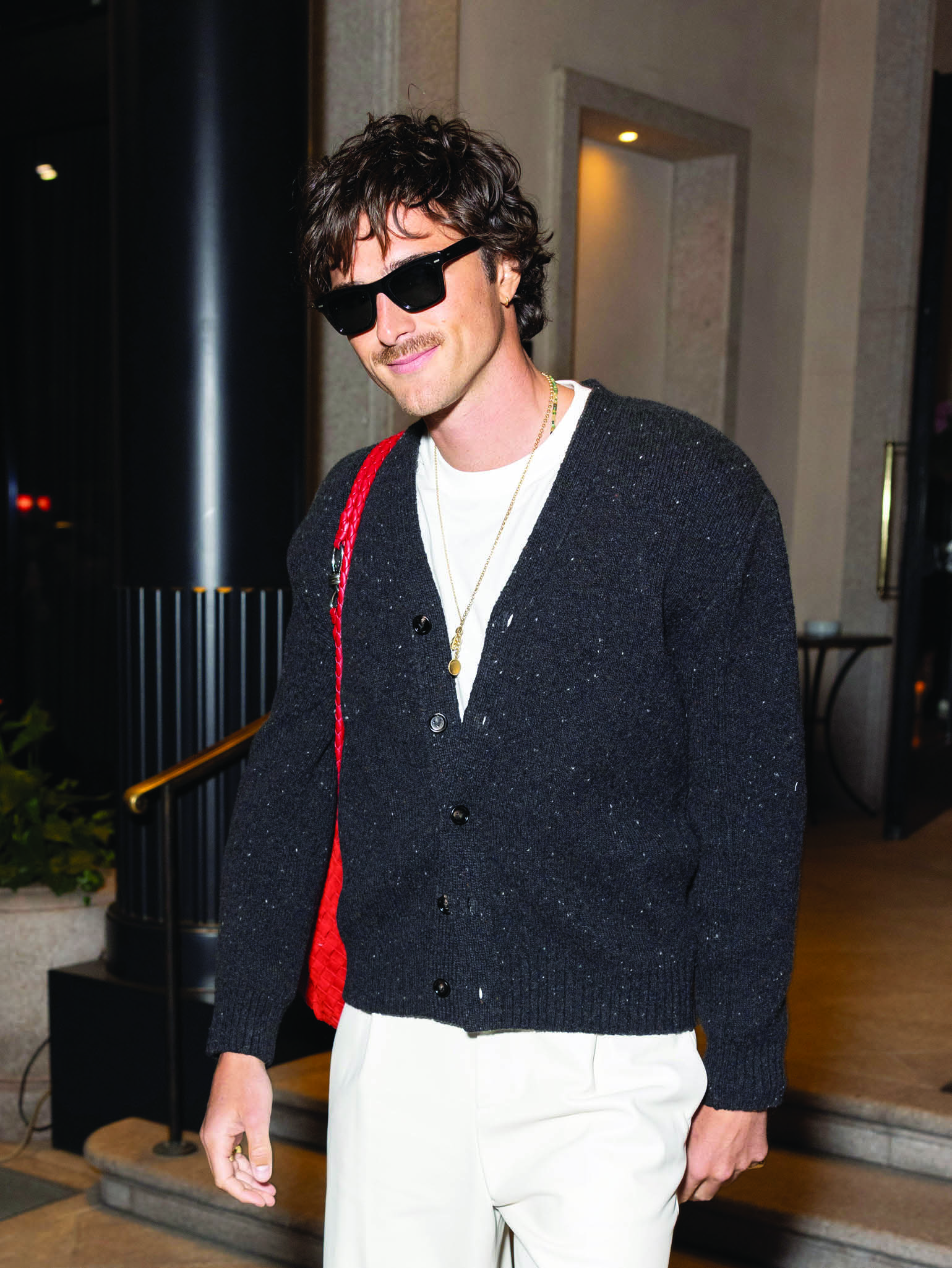 Ưa chuộng những món đồ mang tính hiện đại, Jacob Elordi am hiểu thế nào là một chiếc túi xách đáng giá. Nam diễn viên từng khiến mạng xã hội bùng nổ khi xuất hiện cùng chiếc túi Bottega Veneta Andiamo màu đỏ cà chua nổi bật, phối với cardigan và set đồ trắng tối giản bên trong. Điểm nhấn thú vị trên tổng thể đến từ một chiếc charm túi hình chú chó nhỏ bằng da. Với gu thẩm mỹ sành điệu và ngày càng khẳng định vị thế trong làng thời trang, Elordi diện túi thiết kế đúng như một fashion insider thực thụ kết hợp cùng mọi bộ trang phục.