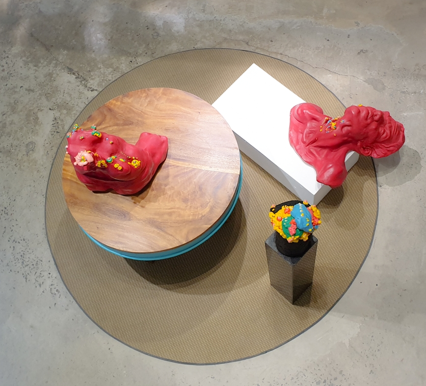 Dị ứng cơ thể có nét đồng điệu với những phản ứng của bản thể – khi xúc cảm con người bị kích động và xâm lấn bởi luồng thông tin vũ bão trên mạng xã hội trực tuyến. Thông qua đó, tôi khắc họa những thương đau thông qua việc hữu hình hóa những vết thương bằng điêu khắc. Bằng cách sáng tác về sự dị ứng vật lý, tôi muốn lột tả được những cảm thức về sự dị ứng của thân thể tinh thần.