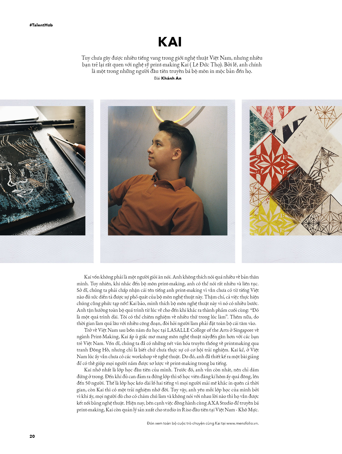 Men’s Folio: Xin chào Kai, đâu là khó khăn lớn nhất khi theo đuổi print-making tại Việt Nam?