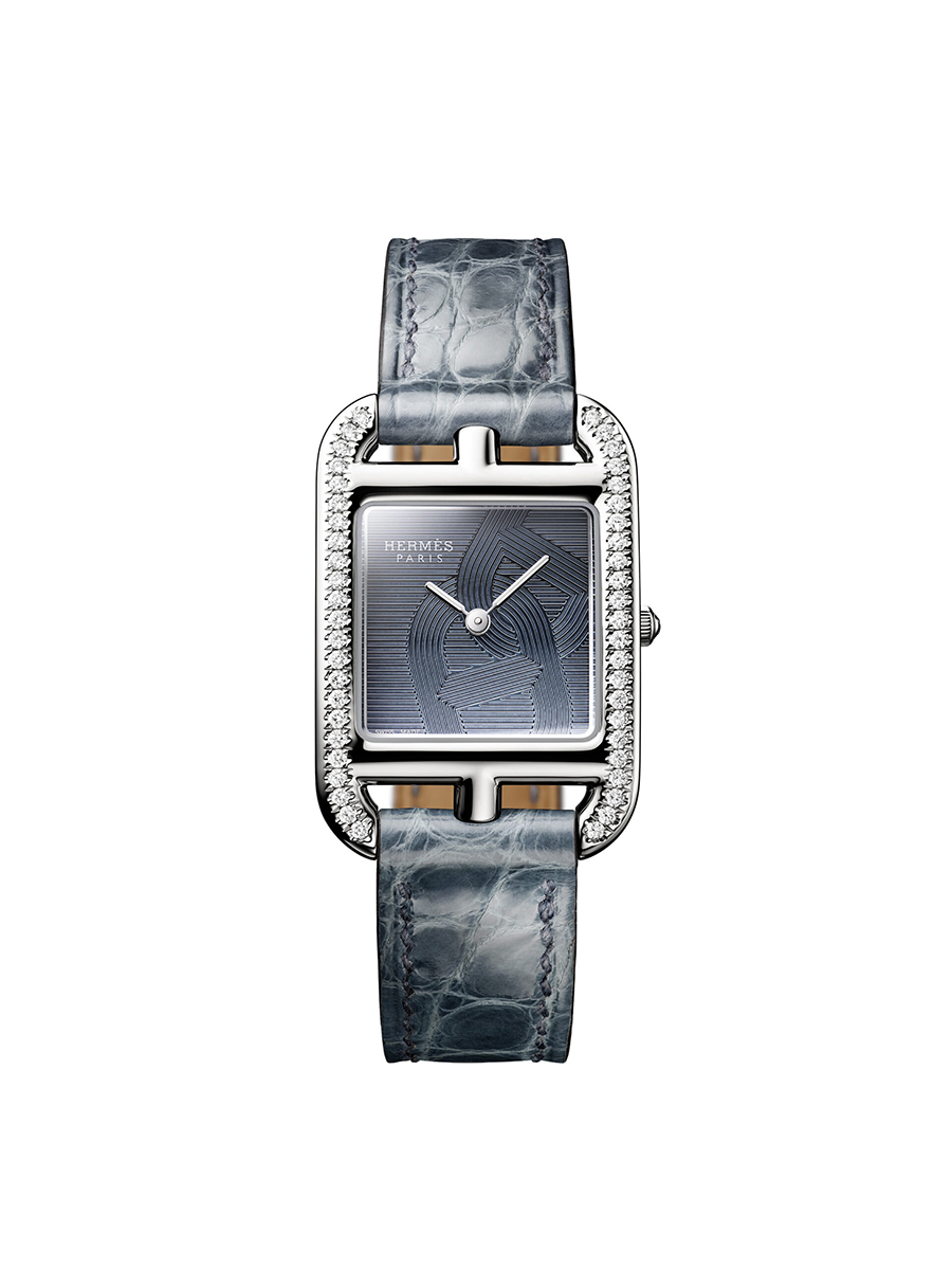 Các mắt xích đan xen nổi bật trên mặt số với các đường khắc kẻ ngang, tất cả đều được phủ một lớp sơn mài làm nền cho kim chỉ giờ dạng dùi cui. Được chế tác trong các xưởng của Hermès Horloger, đồng hồ đi kèm dây đeo bằng da cá sấu hoặc da bê làm nổi bật đa sắc thái: bụi bặm, mềm mại, hiện đại và thanh lịch.