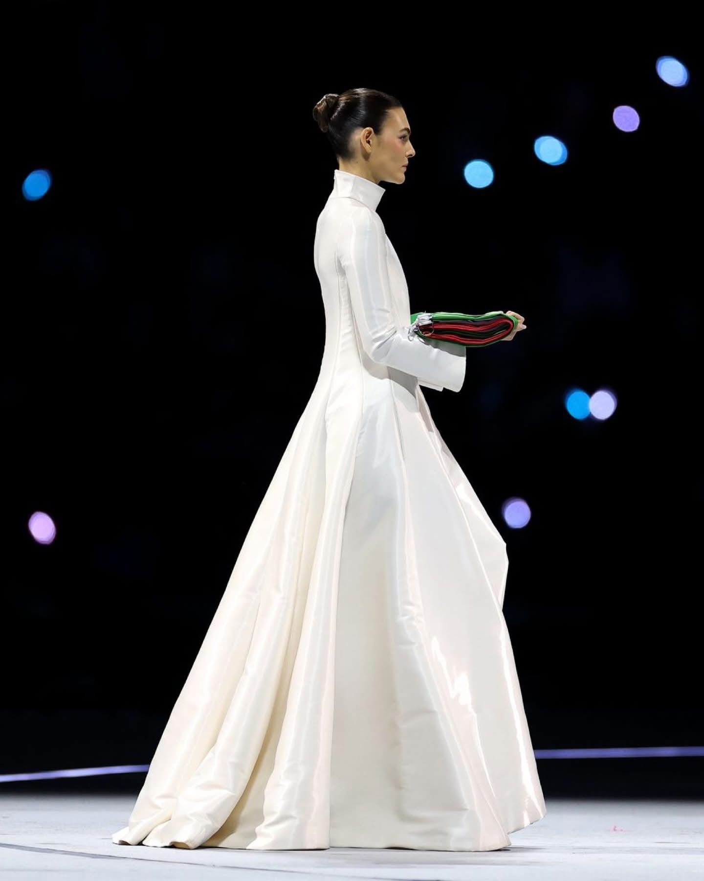 Tại lễ khai mạc Olympic và Paralympic Mùa đông Milano Cortina 2026 diễn ra ở Milan, Vittoria Ceretti – Gương mặt mới nhất của chiến dịch Giorgio Armani Xuân Hè 2026 đã trở thành tâm điểm khi xuất hiện trong một thiết kế custom trắng tinh khôi thuộc dòng Giorgio Armani Privé đảm nhận vai trò mang cờ dẫn đầu đội tuyển danh dự.