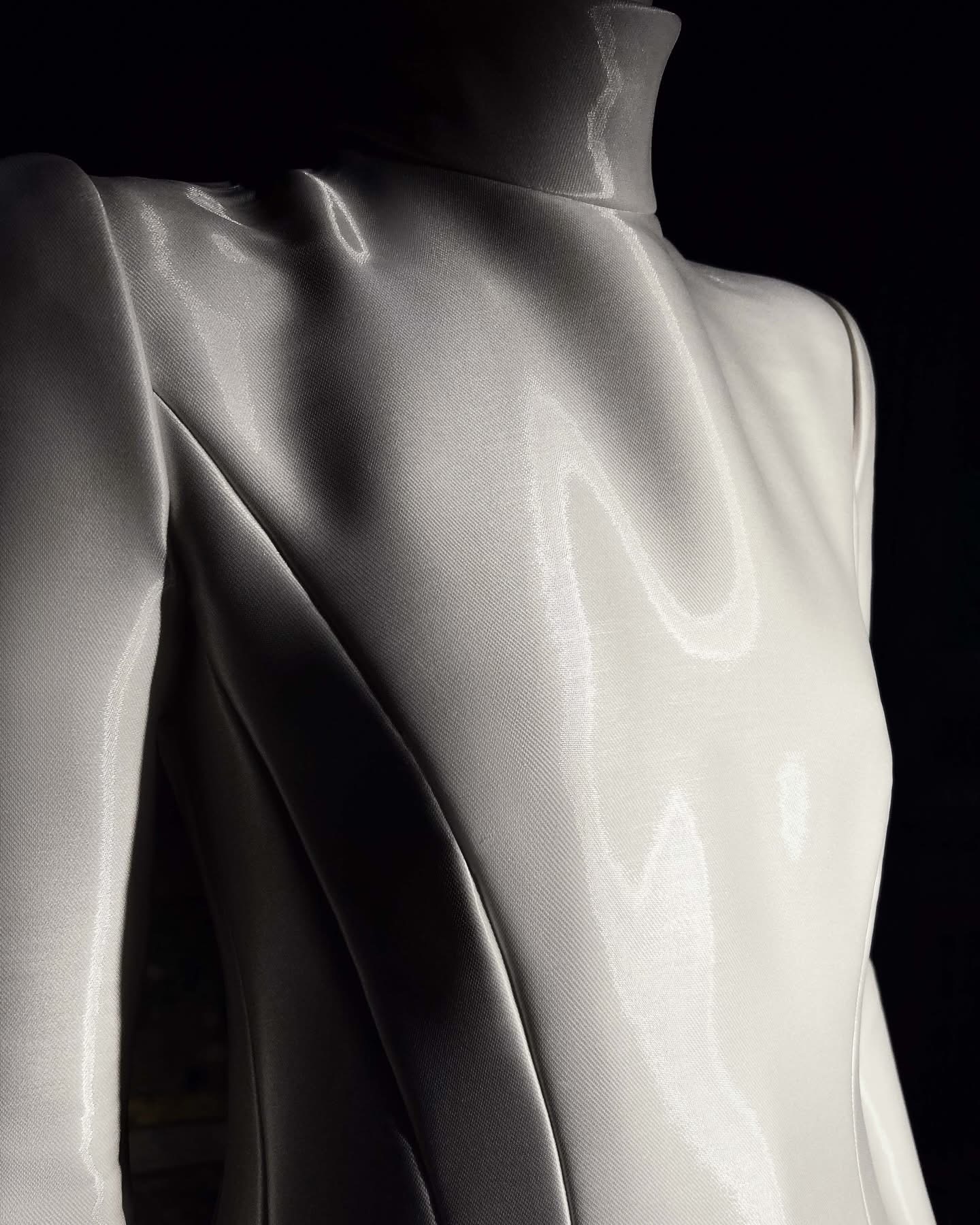 Ở một khoảnh khắc khác trong chương trình, Vittoria Ceretti tiếp tục xuất hiện trong một thiết kế váy trắng mùa đông kết hợp áo choàng lông vũ do Fausto Puglisi – Giám đốc Sáng tạo của Roberto Cavalli – thực hiện riêng. Sự chuyển đổi giữa tinh thần haute couture chuẩn mực của Armani và vẻ quyến rũ kịch tính của Cavalli cho thấy khả năng biến hoá linh hoạt của Ceretti trên sân khấu toàn cầu.