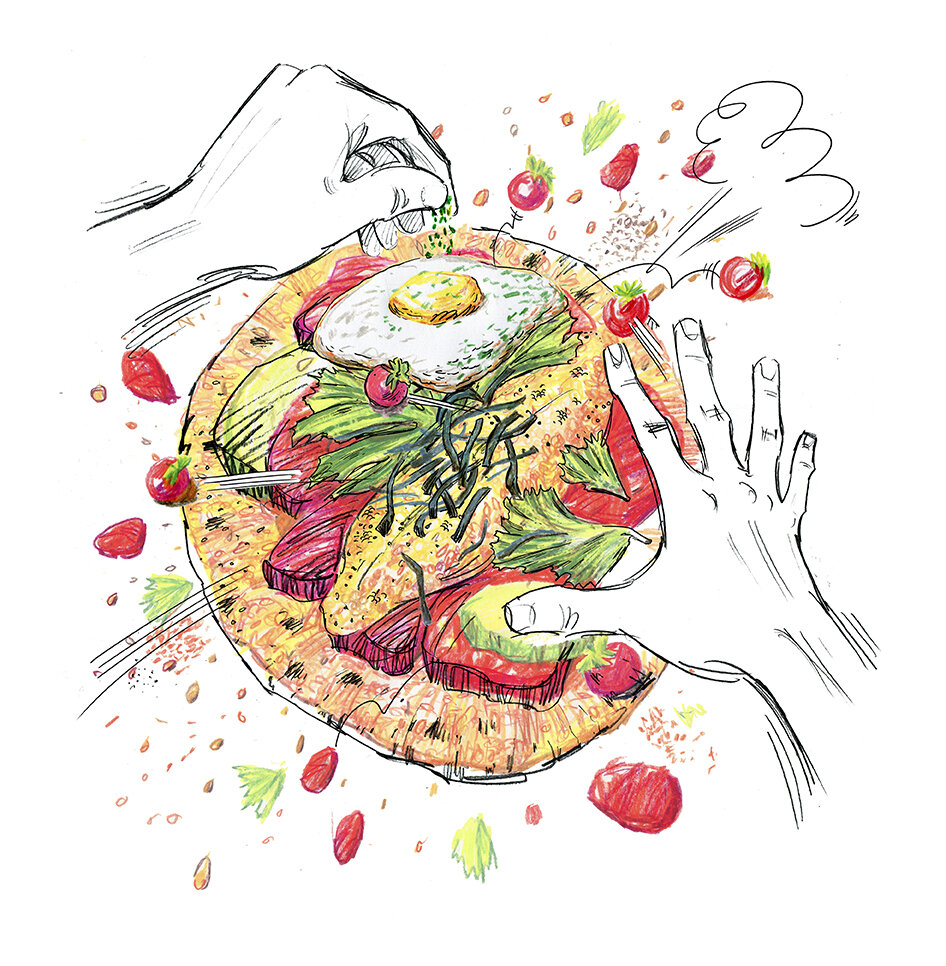 Thường thì tôi sẽ vẽ phác thảo nhanh trên iPad hay trong sổ phác thảo của mình. Tôi sẽ chụp ảnh của bất kỳ tài liệu tham khảo nào mà tôi nghĩ là cần thiết và sau đó sử dụng ảnh đó trong khi vẽ. Tôi cũng sẽ xem ảnh của các vận động viên để đảm bảo rằng các tư thế đặc thù chính xác của môn thể thao mà tôi đang cố gắng mô tả. Đôi khi bạn bè của tôi sẽ tạo dáng để tôi có thể vẽ chính xác bộ phận cơ thể và nếp gấp quần áo. Mỗi tác phẩm mất từ 3 đến 10 giờ để làm.