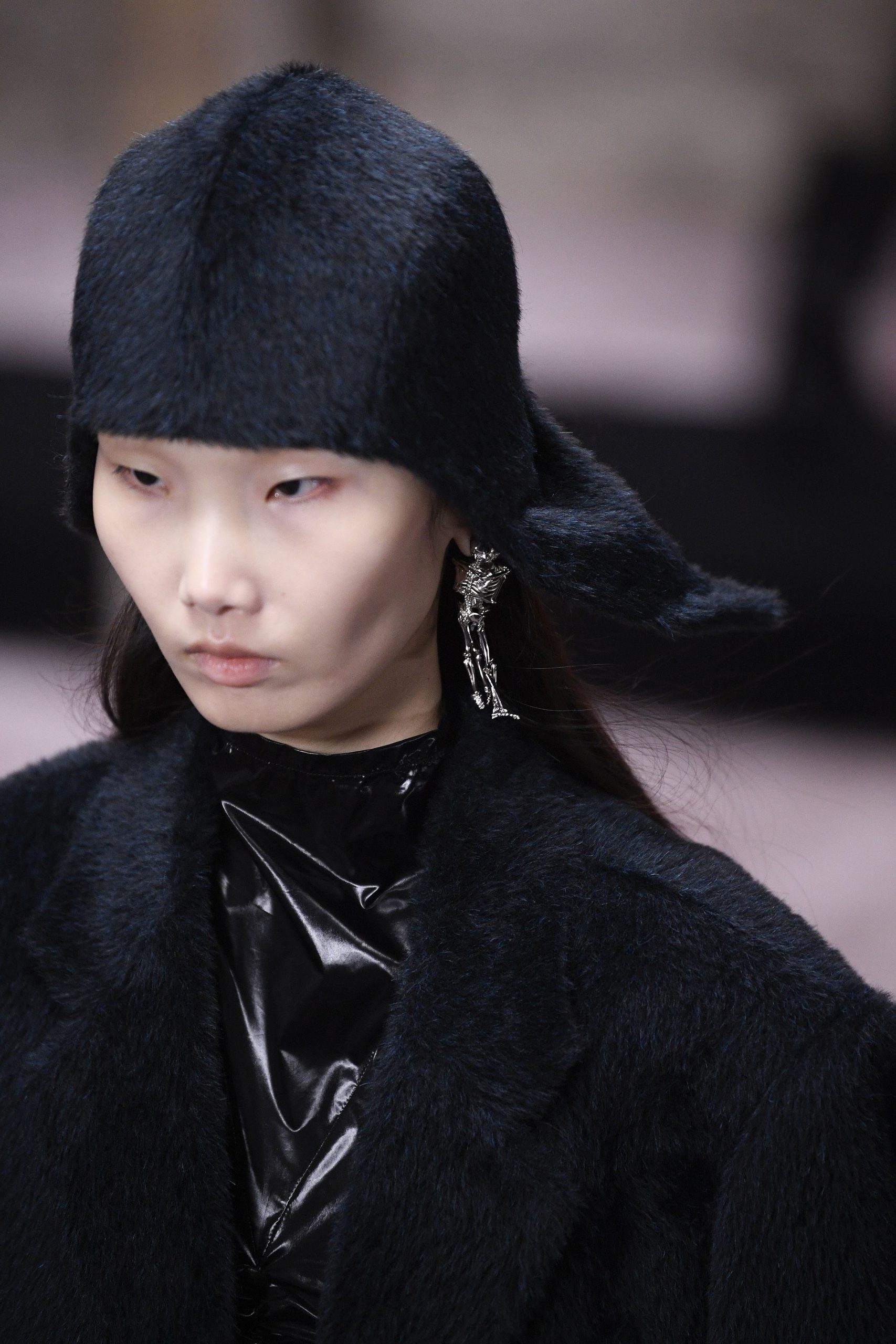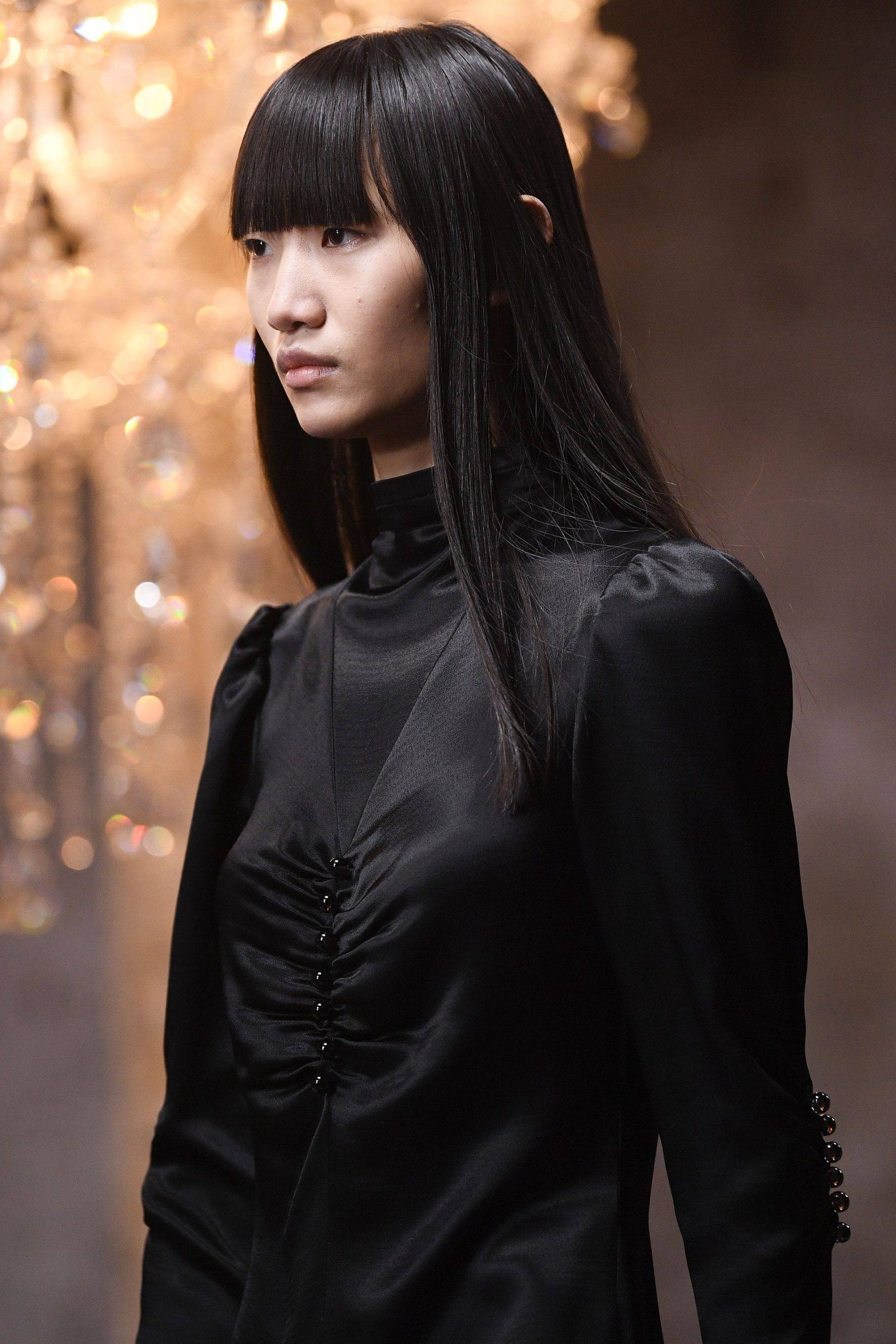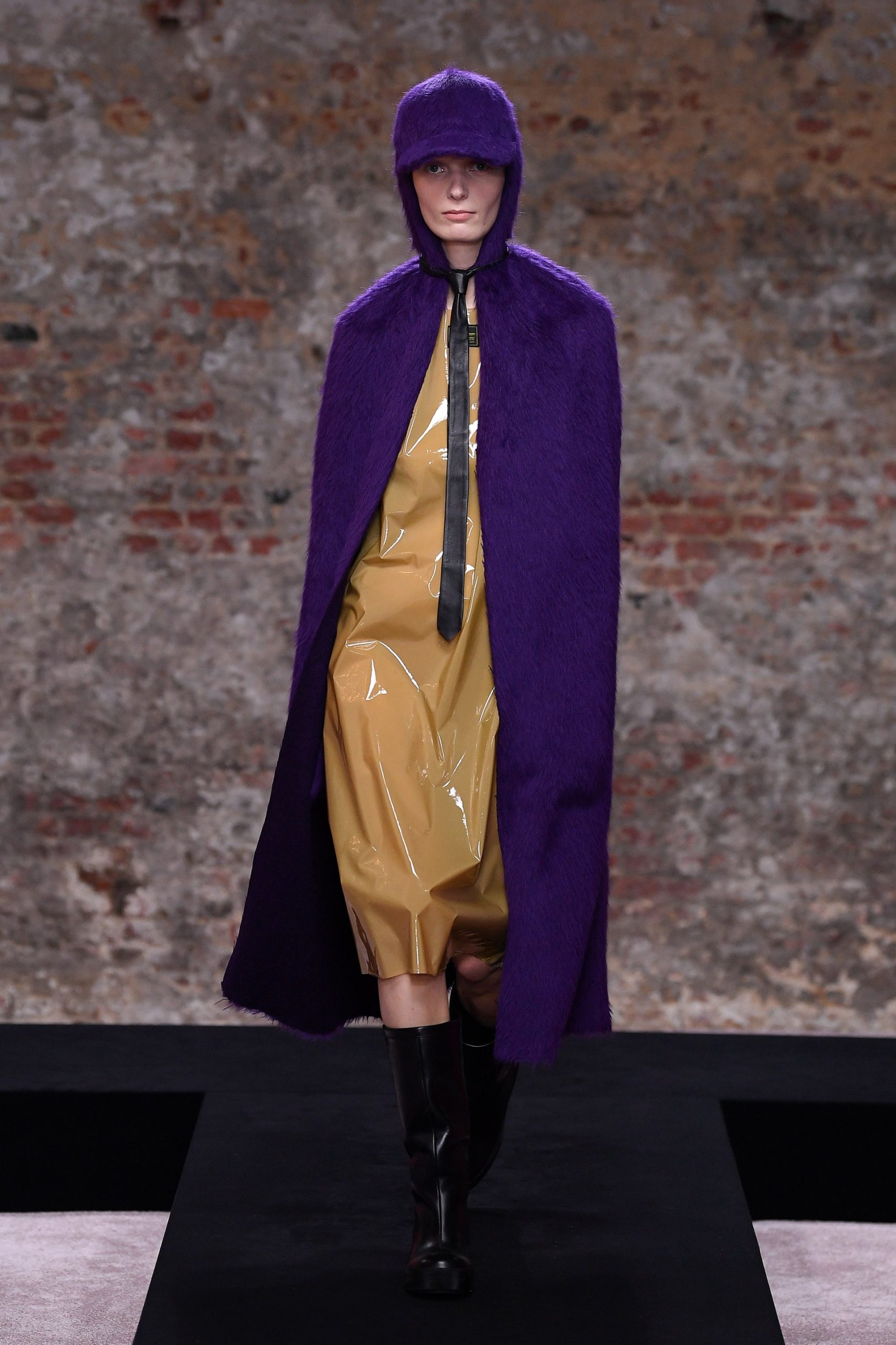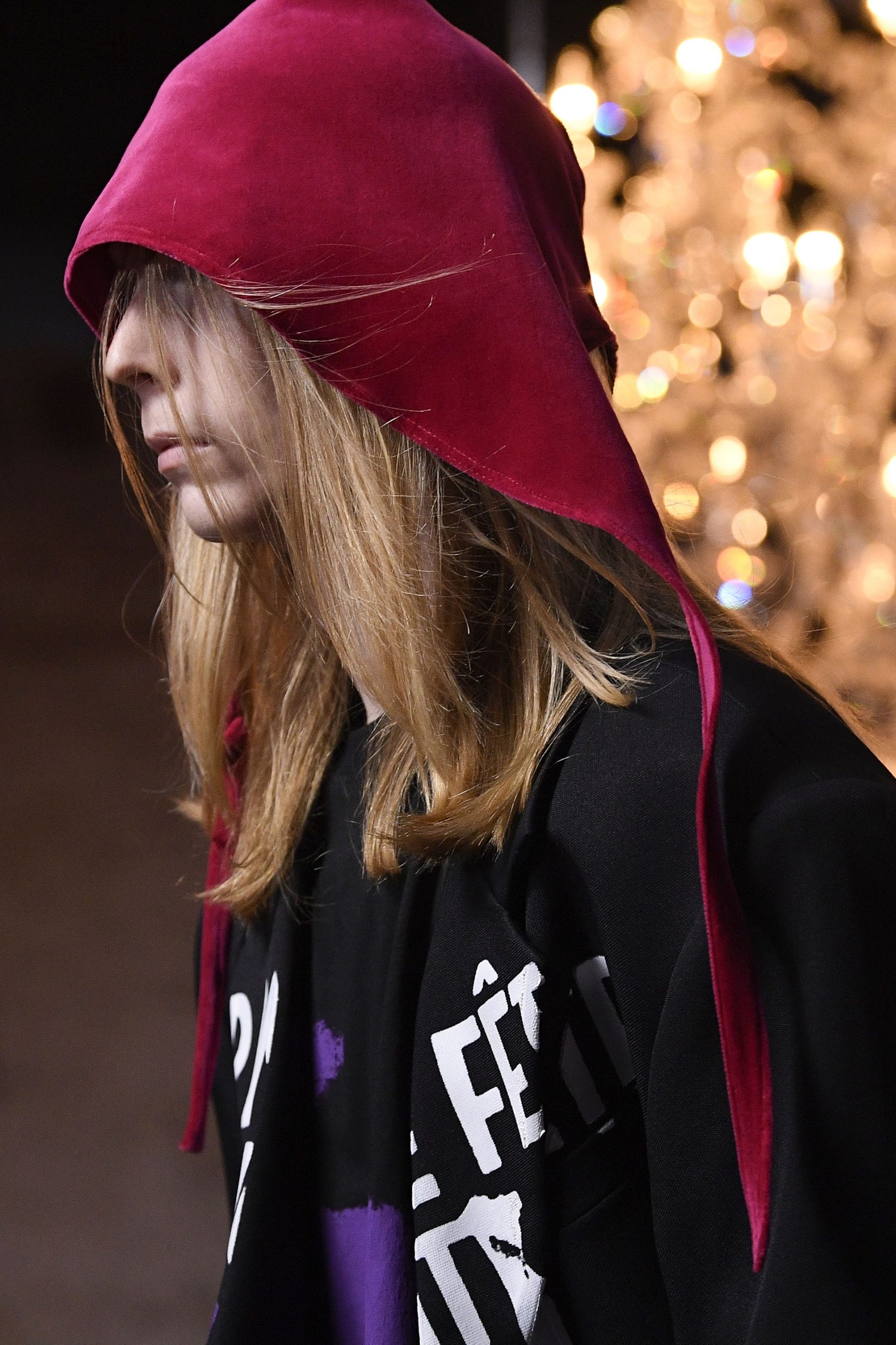 Xuyên suốt 54 look diễn Raf Simons là những phom dáng góc cạnh, bóng bẩy, và có chút kỳ quái. Ở đó, những kiểu dáng thời trang để lại ấn tượng mạnh mẽ nhất có lẽ là chiếc nón gắn liền với lớp áo choàng từ chất liệu mohair, tia sáng óng ánh từ những bộ áo choàng tu sĩ và bodysuit, và những đôi bốt đen tuyền cách điệu. Dàn người mẫu nối chân nhau bước đi trong một bối cảnh rùng rợn với lớp tường sờn ảm đạm trên đầu là chiếc đèn chùm thủy tinh, xung quanh là những nội thất bị phủ kín bởi lớp vải đỏ.