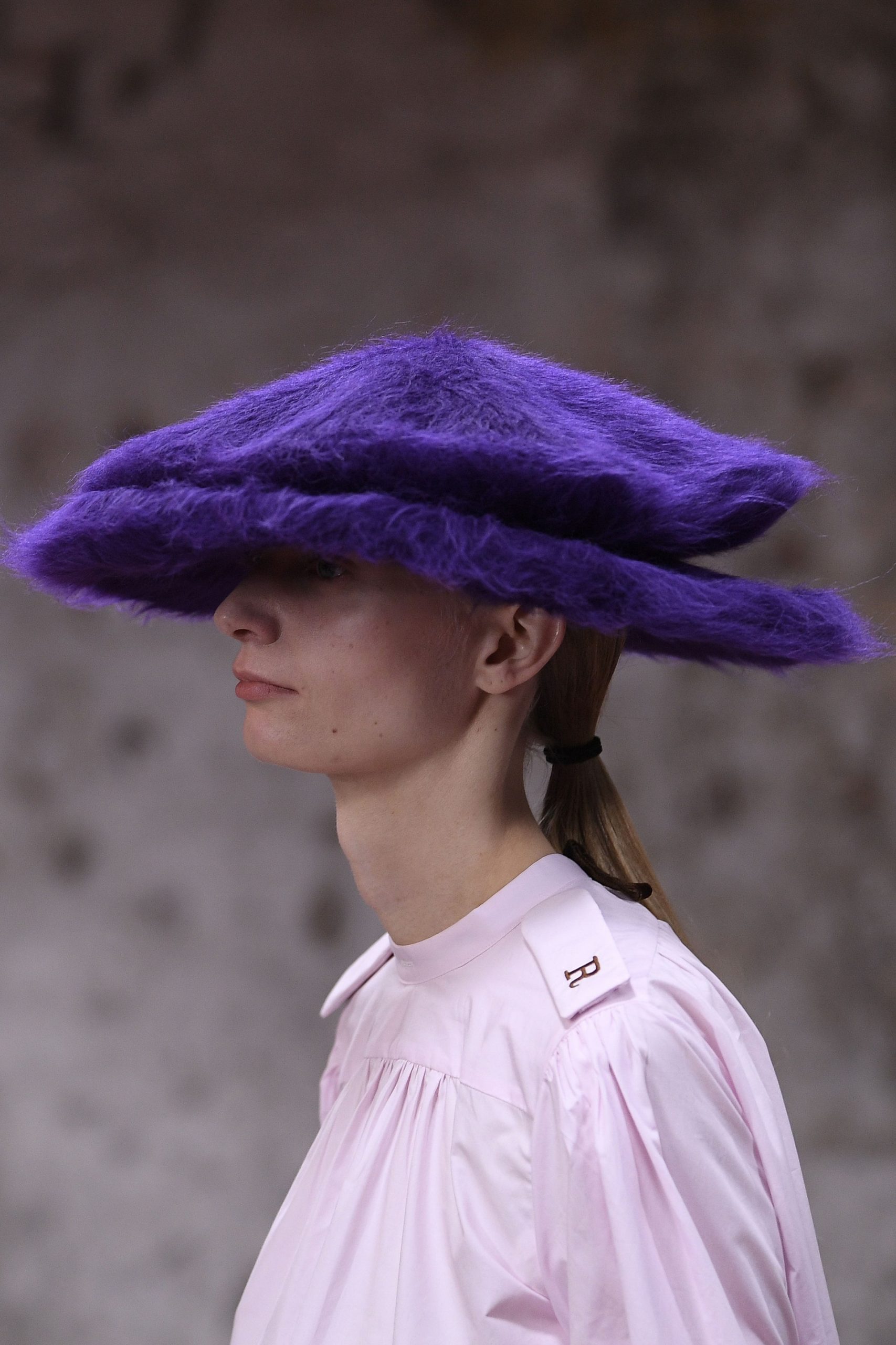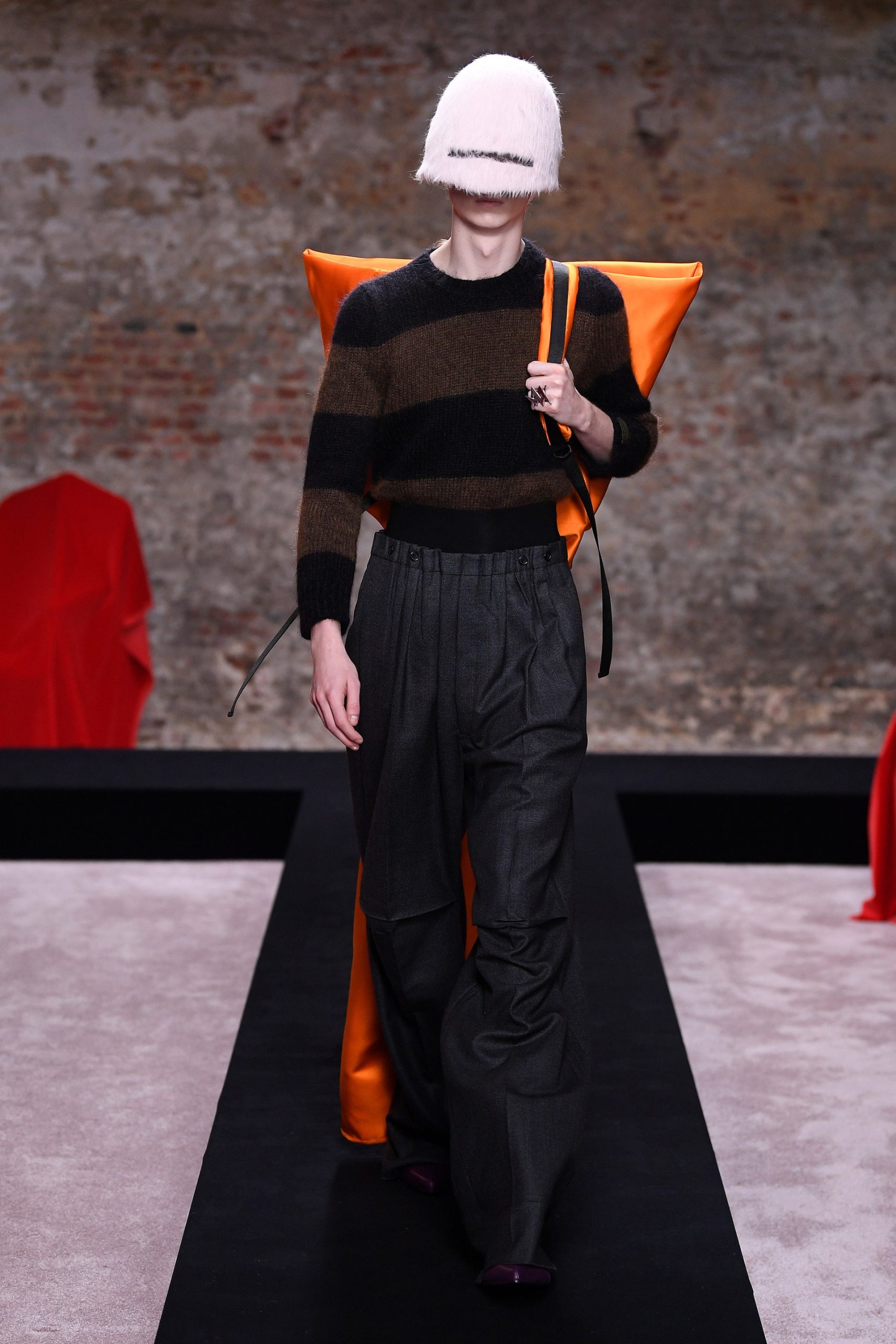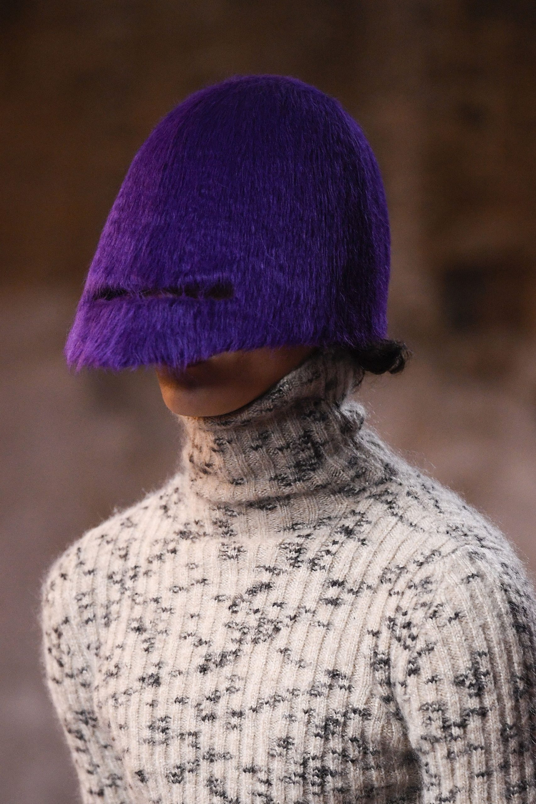 Ở bộ sưu tập Thu Đông 2022 lần này, ông lấy cảm hứng các thiết kế mới mẻ của mình từ Netherlandish Proverbs, bức hội họa nổi tiếng năm 1559 của Pieter Bruegel the Elder. Có thể thấy, ngay từ look diễn đầu tiên, mọi người đã thấy được hình ảnh của người đàn ông trung tâm bức tranh, qua chiếc áo choàng gắn liền với nón màu xanh biển được thiết kế hợp tác cùng Stephen Jones. Từ đây, hàng loạt các kiểu dáng nón của bộ sưu tập xuất hiện đầy ấn tượng, tô điểm thêm nét thanh thoát trên những trang phục của nhà thiết kế tài hoa. Nào là những chiếc mũ trùm kín với đường rãnh để nhìn, tựa chiếc mũ bảo vệ của các chiến binh thời Trung cổ, nào là những chiếc nón phom dáng babushka ấm áp với lớp lông che qua tai.
