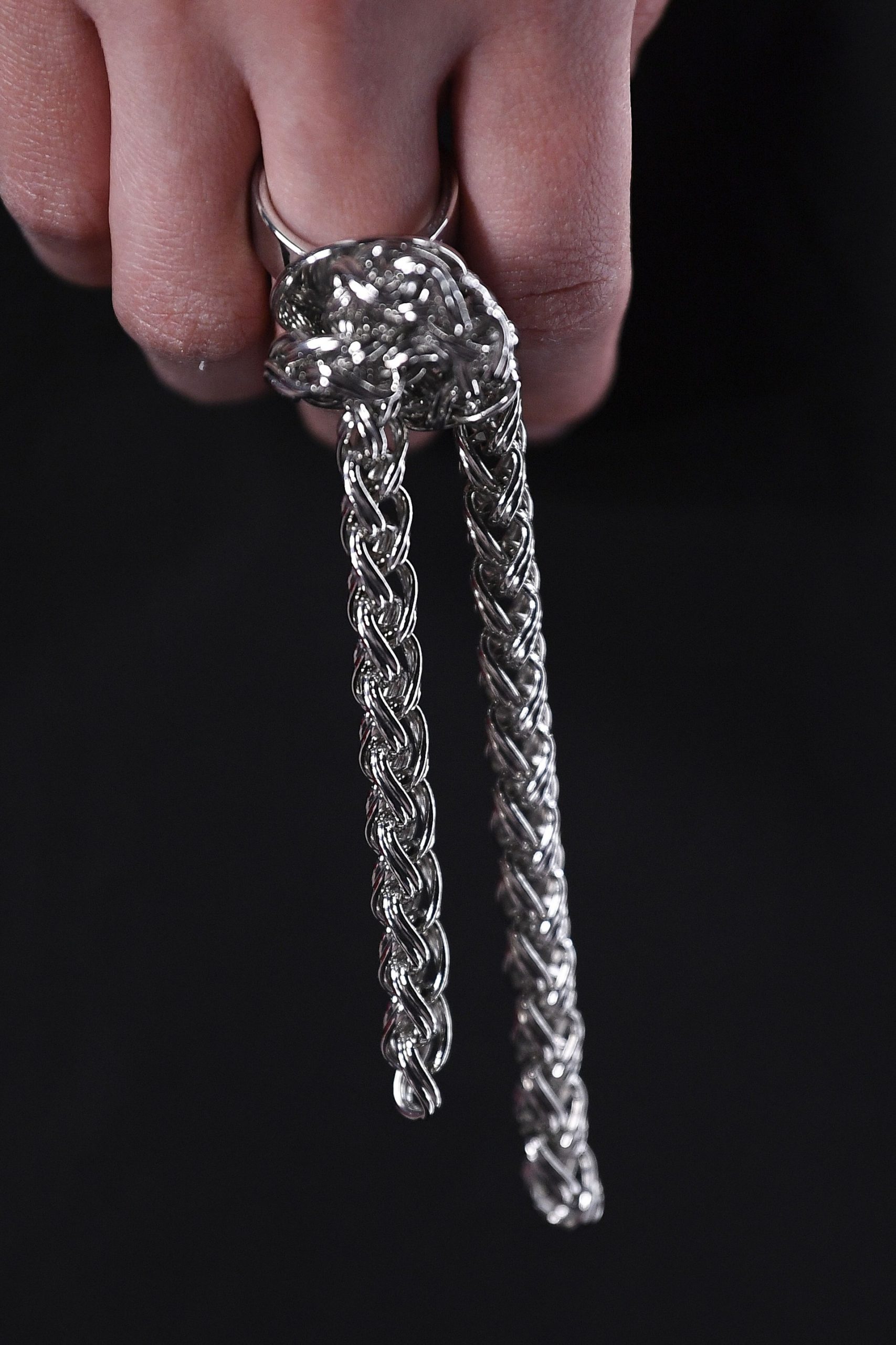 Từ họa tiết đến các phụ kiện, Raf Simons tiếp tục thể hiện niềm đam mê của mình với bộ xương người. Những chiếc vòng tay, ghim cài và bông tai đều mang hình dáng bộ xương. Cặp bông tai hình xương người lơ lửng còn được nhà thiết kế người Bỉ tô điểm bằng những hạt kim cương Swarovski. Ngoài ra, một số thiết kế phụ kiện nổi bật như cặp bông tai hình hai xương người hôn nhau, bông tai ký R đính đá, nhẫn và ghim cài hình hai tia sét giao nhau… cũng để lại dấu ấn độc đáo cho bộ sưu tập lần này.