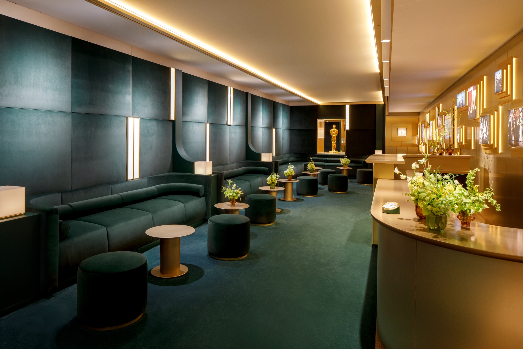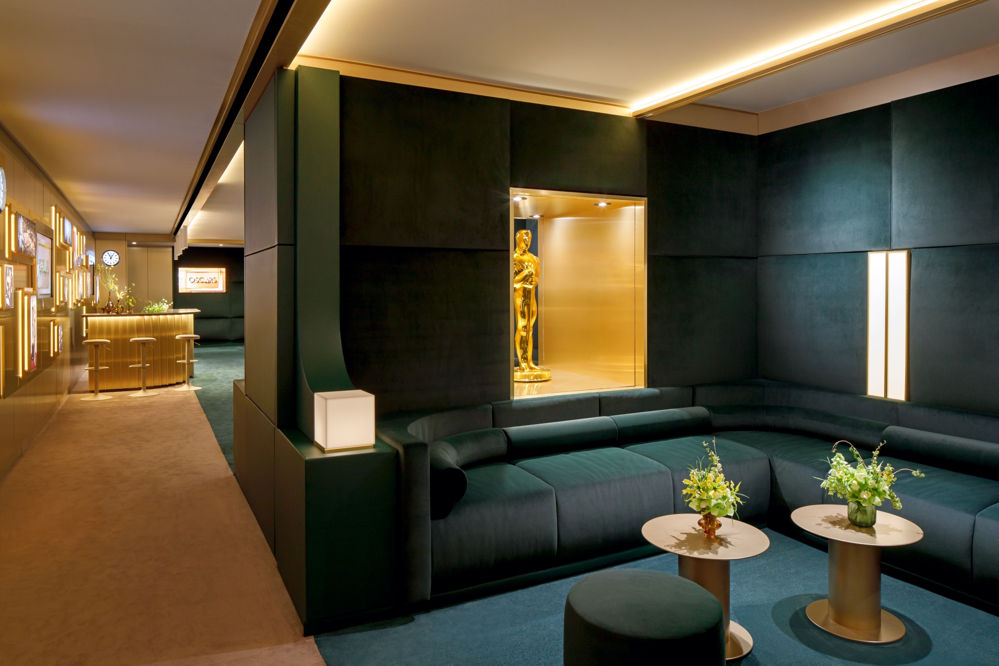 Phòng Oscars® Greenroom là không gian sang trọng nằm ngay phía sau sân khấu chính, nơi các khách mời trao giải, nhân vật được đề cử và người chiến thắng có thể nghỉ ngơi, thư giãn trong suốt thời gian chương trình diễn ra.