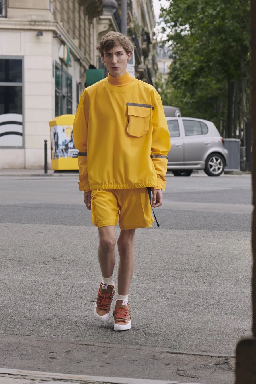 Bộ sưu tập là màu sắc năng động và khỏe khoắn, mang điểm nhấn là những phom áo khoác ngoại cỡ, tái cấu trúc và thiết kế quần ngắn xuyên suốt. Trong đó, dấu ấn của Abe và sacai được thể hiện qua các họa tiết bandana, sọc ca rô kiểu buffalo và những miếng vải thảm jacquard đậm chất du mục. Còn về phần Errolson Hugh và ACRONYM, ông mang đến chất liệu chống thấm nước và thiết kế công năng trứ danh.