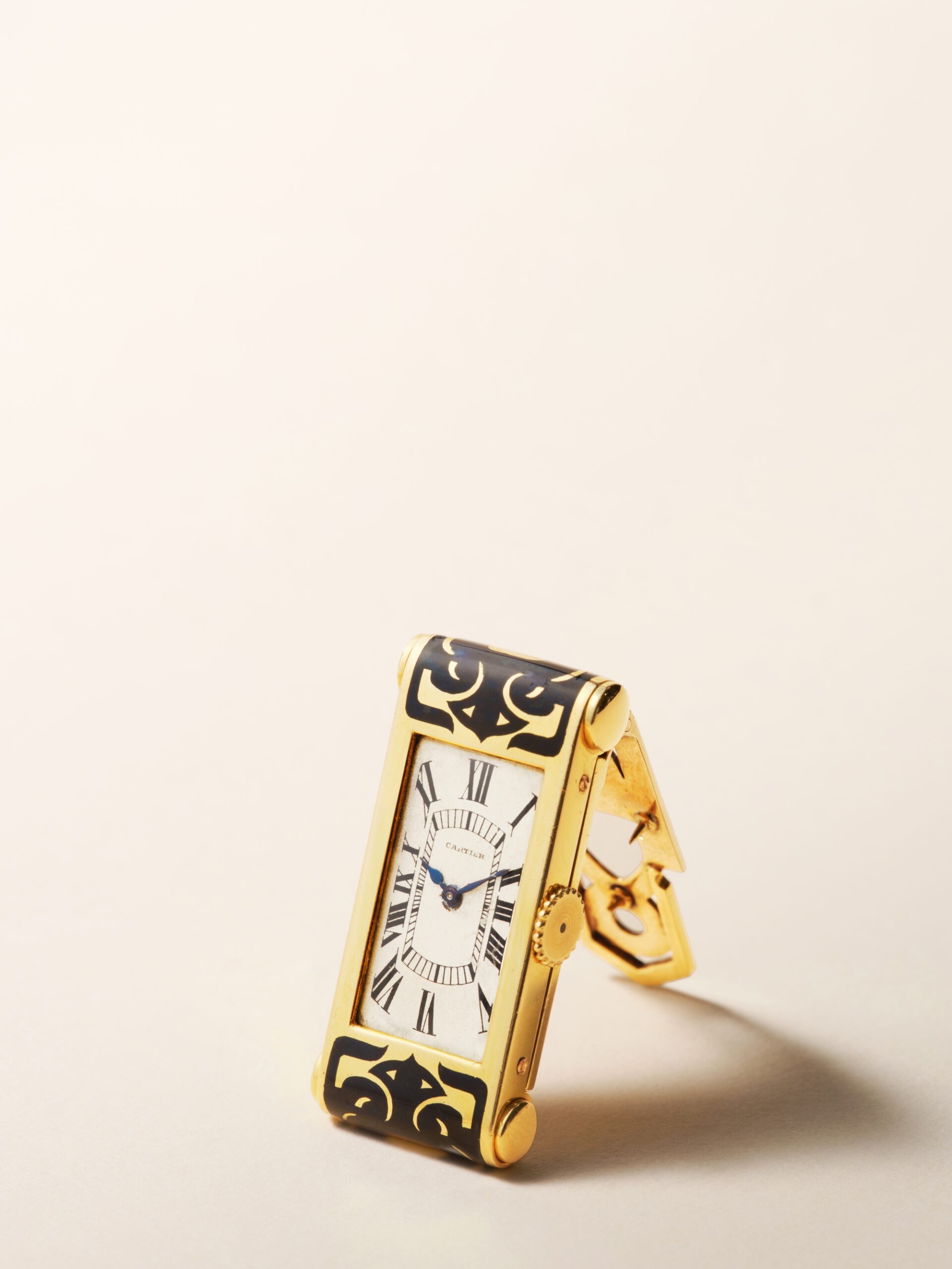 Những thiết kế giàu tính tạo hình cũng thu hút sự quan tâm đặc biệt. Một mẫu purse watch tạo hình quả óc chó tăng lên gấp 16 lần mức estimate cao nhất, đạt HK$960,000, trong khi chiếc Art Deco clip watch phủ men đen chốt giá HK$768,000.