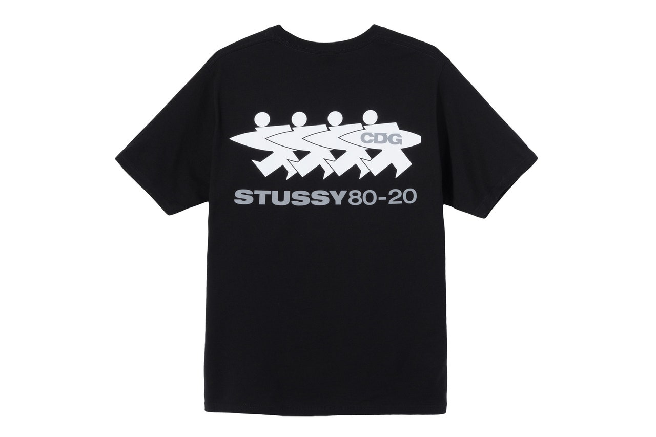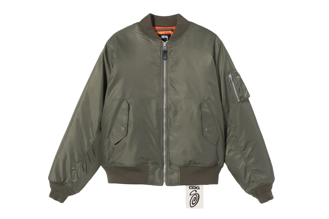 Bộ sưu tập gồm các mẫu áo khoác quân đội MA-1 chất liệu satin nylon; áo khoác Bing sọc mảnh, áo thun, túi tote và nón bucket. Từ đầu năm 2020, bộ đôi dánh dấu màn kết hợp đầu tiên bằng thiết kế áo khoác bóng chày. Chi tiết trang trí trên áo là các mảng đắp vải chenille. Chúng trở nên đặc biệt vì các mảng vải được lấy từ trang phục của cả hai thương hiệu. Trong lần kết hợp này, Stüssy cùng Comme des Garçons cho ra mắt dòng sản phẩm ứng dụng cao cấp. Trên các thiết kế hiện diện logo của cả hai thương hiệu. Điều này góp phần nâng cao giá trị quảng bá tên tuổi đáng kể.