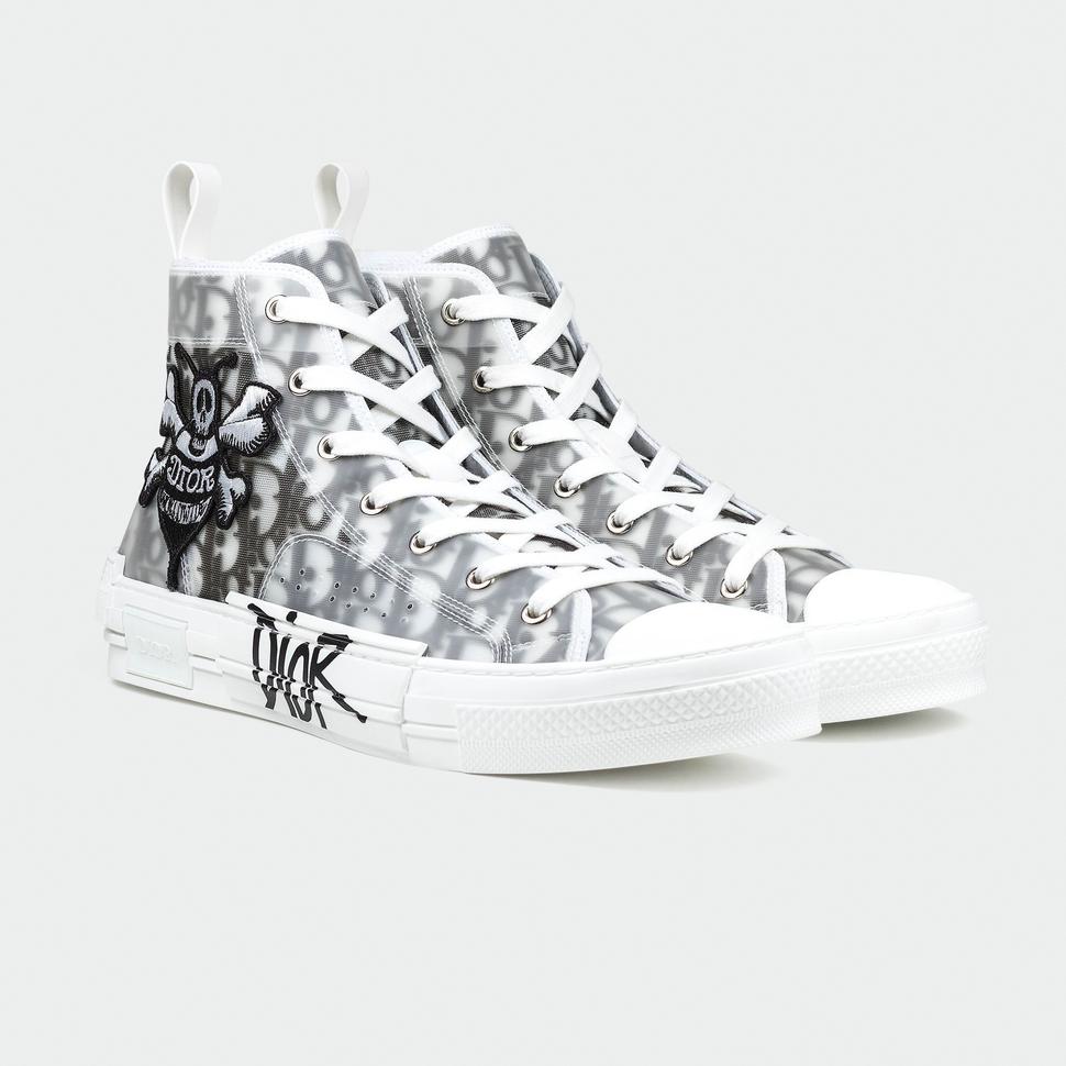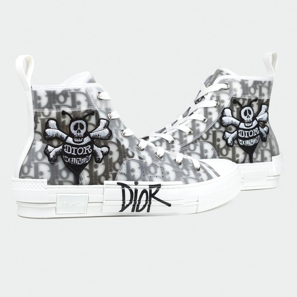 Nhưng đình đám hơn cả, phải kể đến phiên bản Dior x Shawn Stussy B23 Dior Oblique High White Sneakers.