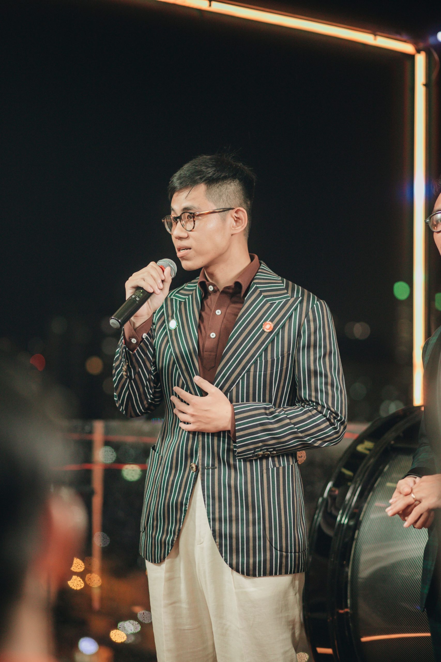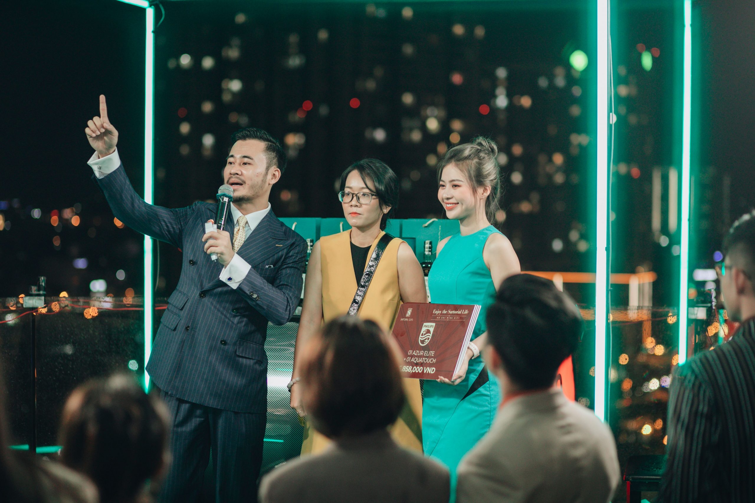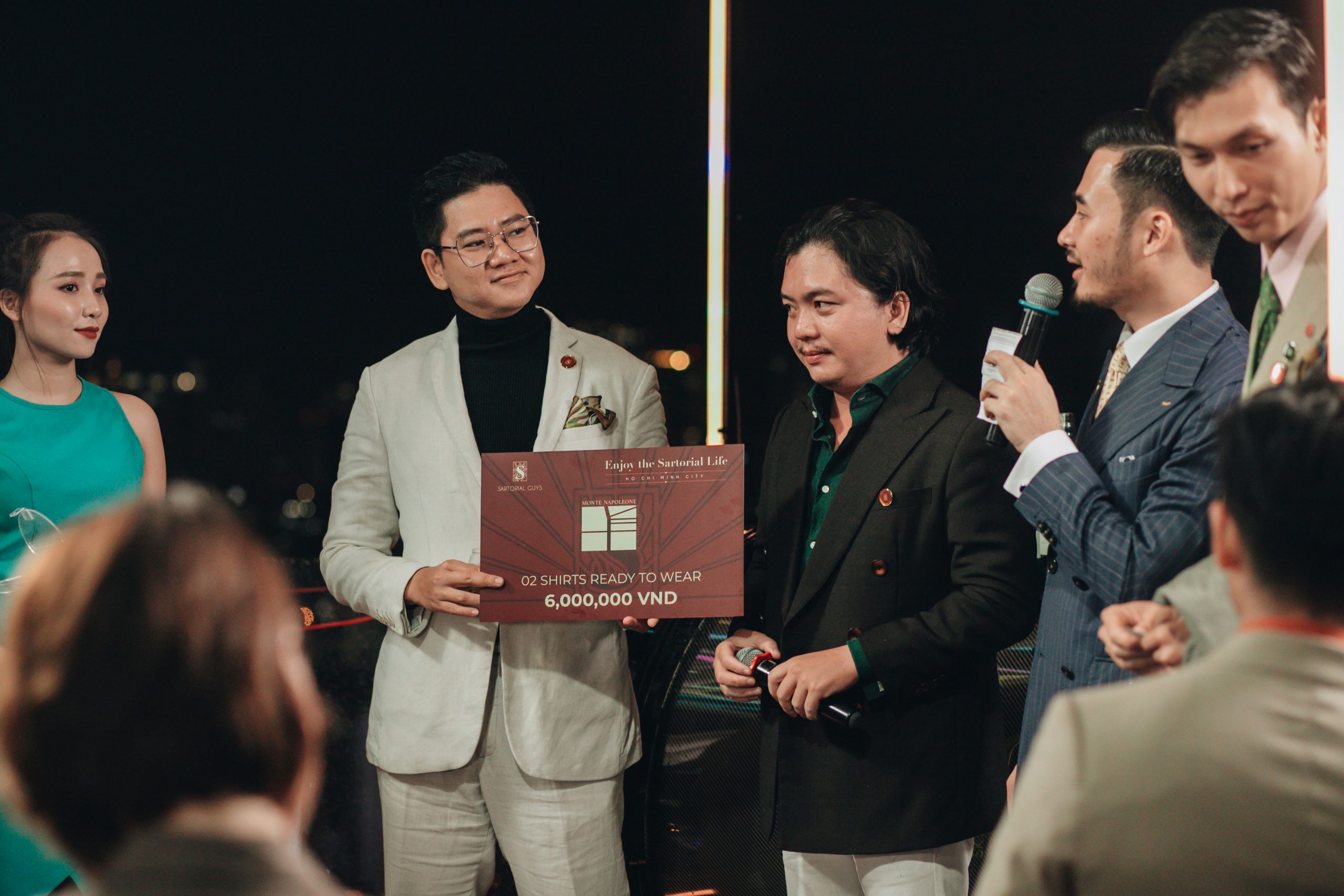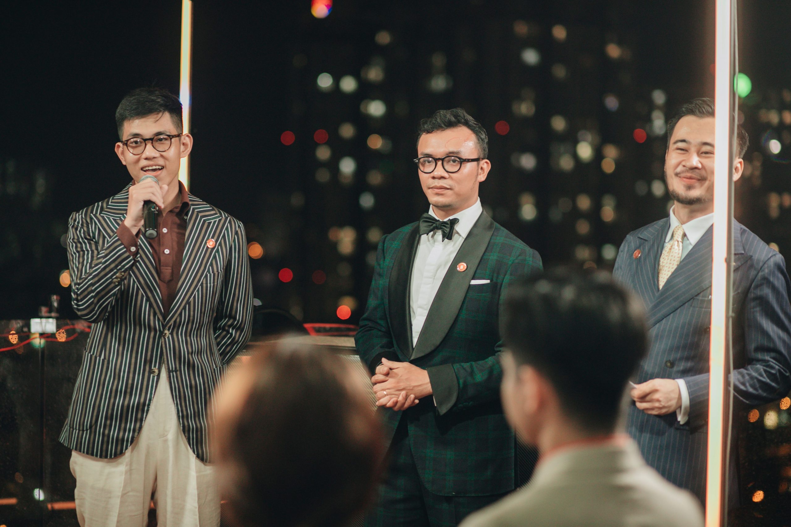 Đúng Sáu giờ, buổi tiệc bắt đầu bằng lời phát biểu của anh Tân Trương. Anh là một trong hai admin của câu lạc bộ quý ông Sartorial Guys. Đêm tiệc là nơi giao lưu giữa những con người đam mê phong cách Sartorial, bất kể giới tính. Ngoài ra, anh còn gửi lời tri ân sâu sắc đến các nhà tài trợ. Bài phát biểu của anh kết thúc với lời kêu gọi giúp đỡ đồng bào miền Trung cùng thông điệp ý nghĩa về phong cách sống: