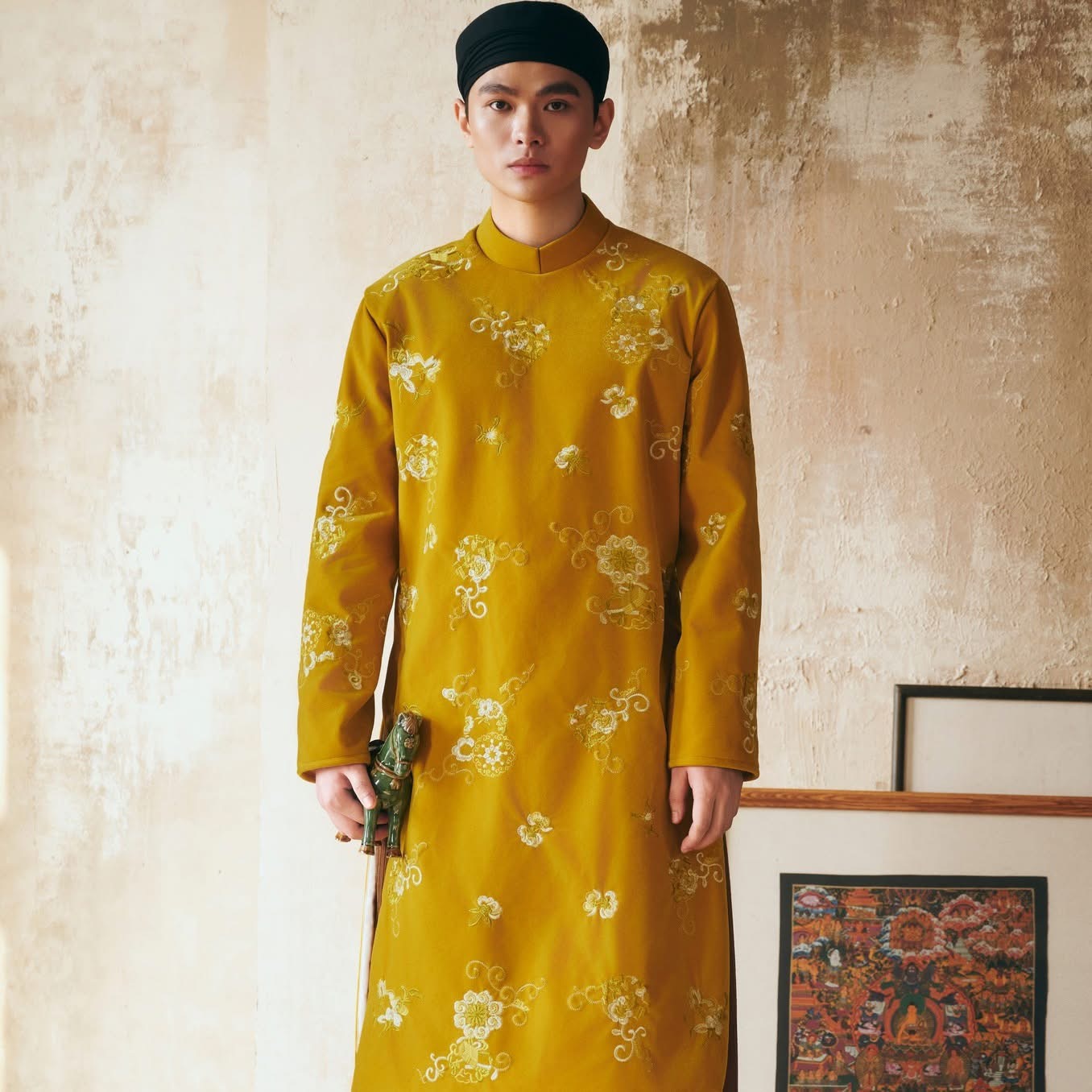 Trong thời trang, sắc vàng nhạt trên chiếc áo dài truyền thống, chất liệu áo len mềm mại hoặc kiểu áo khoác mỏng giúp nam giới tạo nên vẻ ngoài thanh lịch và nổi bật một cách tinh tế. Gợi ý dành cho các chàng trai chính là phối cùng quần gam màu trung tính hoặc phụ kiện tối giản, màu vàng sẽ trở thành điểm nhấn hoàn hảo, giúp bạn tự tin và tỏa sáng trong mọi cuộc gặp gỡ đầu xuân cùng gia đình hay bạn bè.
