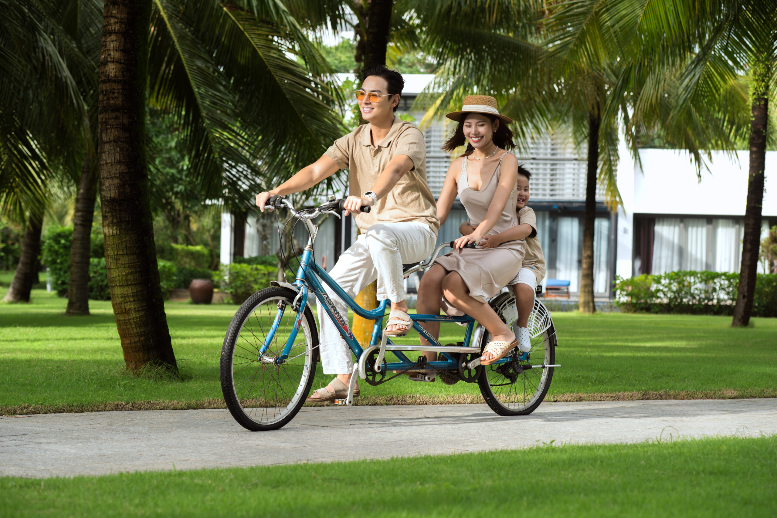 Điểm đến đầu tiên của gia đình Chúng Huyền Thanh là Radisson Blu Resort Phú Quốc, khu nghỉ dưỡng tọa lạc bên bờ biển Bãi Dài. Trong những ngày lưu trú, gia đình dành thời gian đạp xe dọc những cung đường ven biển, khám phá vườn tiêu xanh mướt, hay đơn giản là nằm dài bên hồ bơi vô cực, để lũ trẻ thoả sức nô đùa. Huyền Thanh chia sẻ: “Ở đây, tôi nhận ra rằng sự gắn kết gia đình đôi khi đến từ những khoảnh khắc rất giản đơn, cùng nhau ngắm hoàng hôn trên biển, hay cùng con xây lâu đài cát.” Radisson Blu Resort Phú Quốc cũng mang đến sự tiện nghi hoàn hảo cho gia đình có con nhỏ, từ dịch vụ Kid’s Club, thực đơn thân thiện trẻ em, cho đến các hoạt động thể thao nước dành cho cả gia đình.