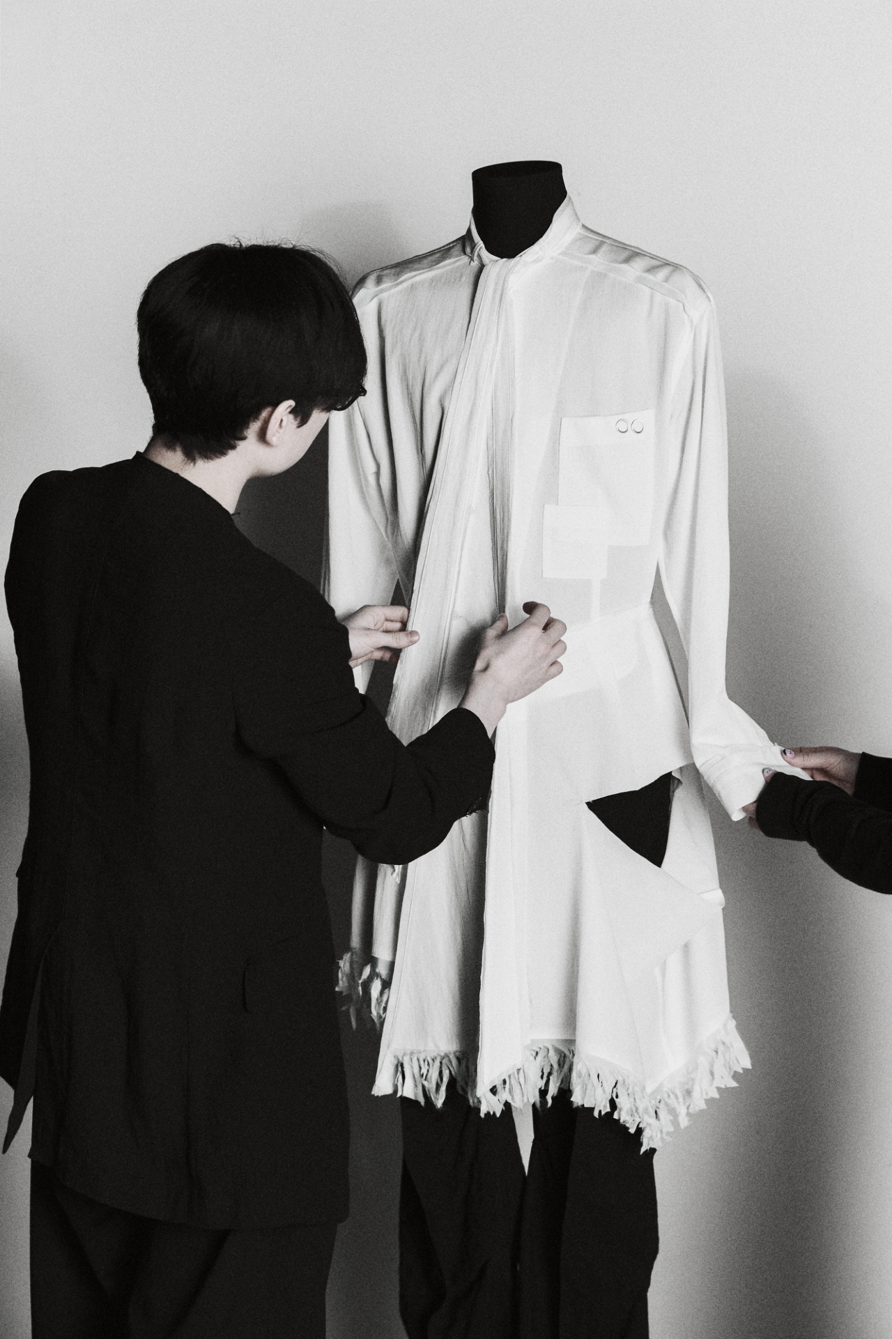 Từ đó, hình ảnh “giáp” xuất hiện như một điểm khởi đầu mang tính biểu tượng. Tuy nhiên, trong quá trình làm việc trực tiếp với các thành viên, yếu tố trình diễn đã khiến ý tưởng này thay đổi. Nhóm mong muốn trang phục phải linh hoạt, chuyển động tốt trên sân khấu. Điều này buộc nhà thiết kế phải tìm cách dung hòa giữa cấu trúc cứng cáp của giáp và sự mềm mại của trang phục truyền thống. Giải pháp đến từ Hanbok với phom dáng nhẹ, rủ tự nhiên được kết hợp cùng các chi tiết mang tính kiến trúc, tạo nên sự đối lập hài hòa giữa cứng và mềm.