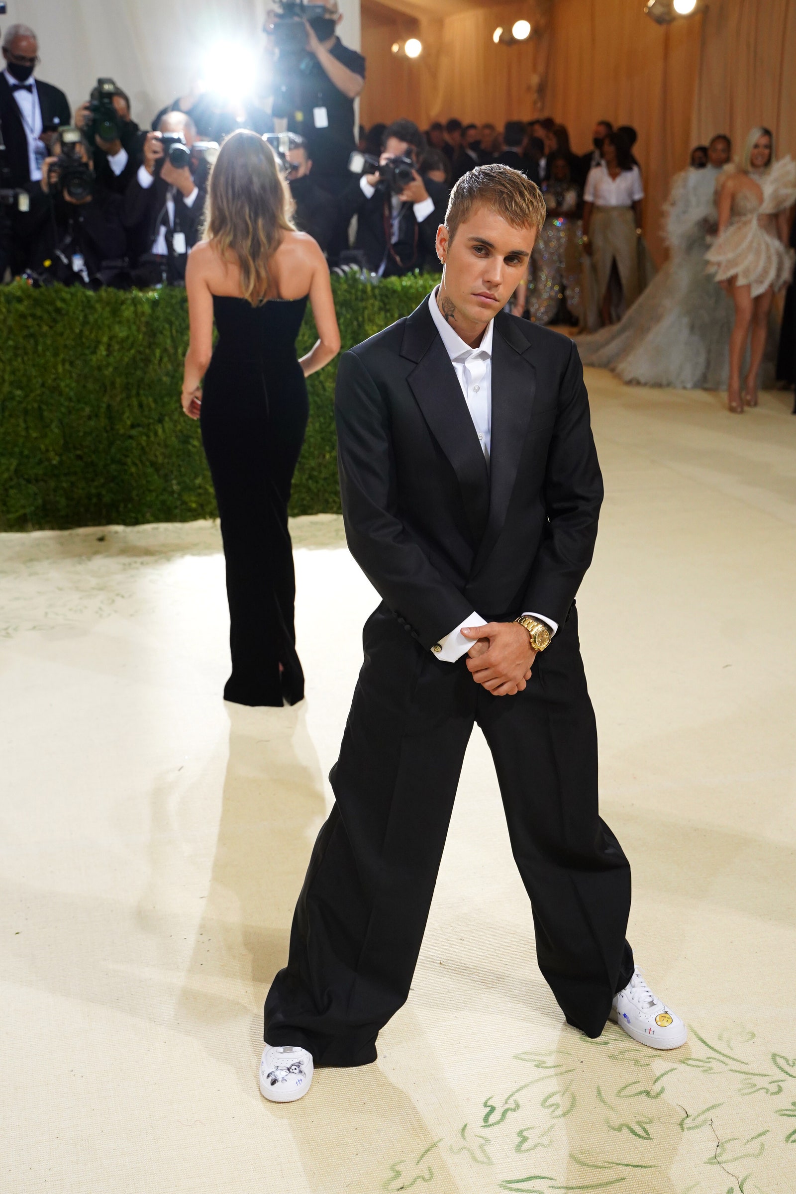 Tạo hình này giúp Rocky giữ được nét đường phố nhưng lại đủ lịch thiệp cho Met Gala. Hay Balenciaga, đã mặc cho Elliot Page trong bộ vest từ buổi trình diễn thời trang cao cấp đầu tay của Demna Gvasalia vào tháng 7 năm ngoái, và một vi dụ khác đến từ Justin Bieber, người đã mặc thương hiệu Maison Drew của anh ấy. Page có một bông hoa cẩm chướng trong ve áo của chiếc áo khoác quá khổ của mình, một cử chỉ tôn kính với Oscar Wilde một biểu tượng của một người đống tính. Bieber thì lại chọn cho mình một chiếc quần quá to, đi kèm cùng với một chiếc áo blazer to không kém.