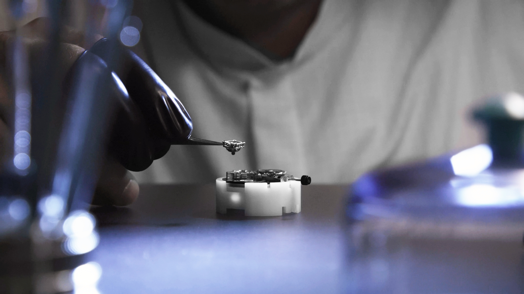 Bên dưới vòm kính và các cơ chế “bay” là mặt số bằng Maillechort, một hợp kim truyền thống của đồng, kẽm và niken. Nổi tiếng với tông màu bạc ấm áp cùng kết cấu hạt sần đặc trưng, vật liệu này được đánh giá cao vì độ bền và vẻ đẹp độc đáo. Vì khó chế tác hơn đồng thau do độ cứng cùng thành phần phức tạp, nên đòi hỏi tay nghề thủ công và độ chính xác cao khi xử lý. Từng được sử dụng trong các nhạc cụ vì đặc tính cộng hưởng âm học, Maillechort là một “kim loại sống”, sẽ phát triển một lớp patina tự nhiên theo thời gian, một chi tiết bộc lộ cá tính của chủ nhân. Vật liệu này được phát minh vào đầu thế kỷ 19 bởi hai kỹ sư người Pháp Maillet và Chorier, sau đó tên của họ được kết hợp để trở thành “Maillechort”.