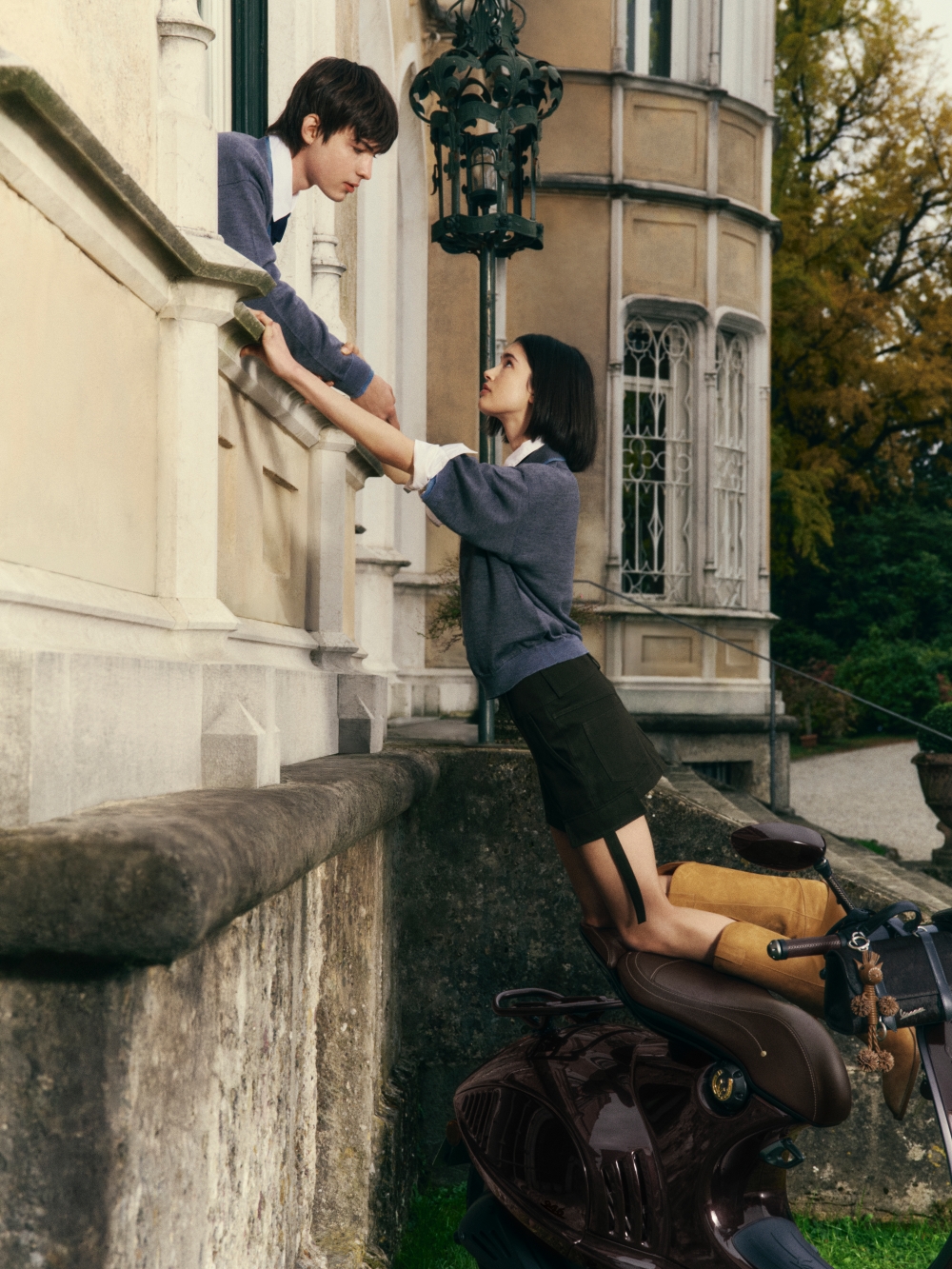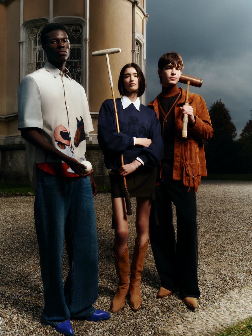 Sắc xanh navy được lựa chọn làm tông màu chủ đạo, biểu trưng cho vẻ đẹp thanh lịch vượt thời gian. Các thiết kế knitwear như áo len, áo gile, và cardigan mang dấu ấn logo chữ V cùng những chi tiết lấy cảm hứng từ kỹ thuật khâu thủ công trong chế tác yên ngựa. Những đường nét mềm mại, phom dáng hiện đại và hoàn thiện tỉ mỉ tạo nên diện mạo mới cho áo hoodie và áo thun, trong khi áo sơ mi poplin mang đến điểm nhấn dí dỏm với hình ảnh một người đàn ông đội mũ bảo hiểm Vespa và một chú ngựa cùng thưởng thức espresso, một khoảnh khắc đầy chất Ý.