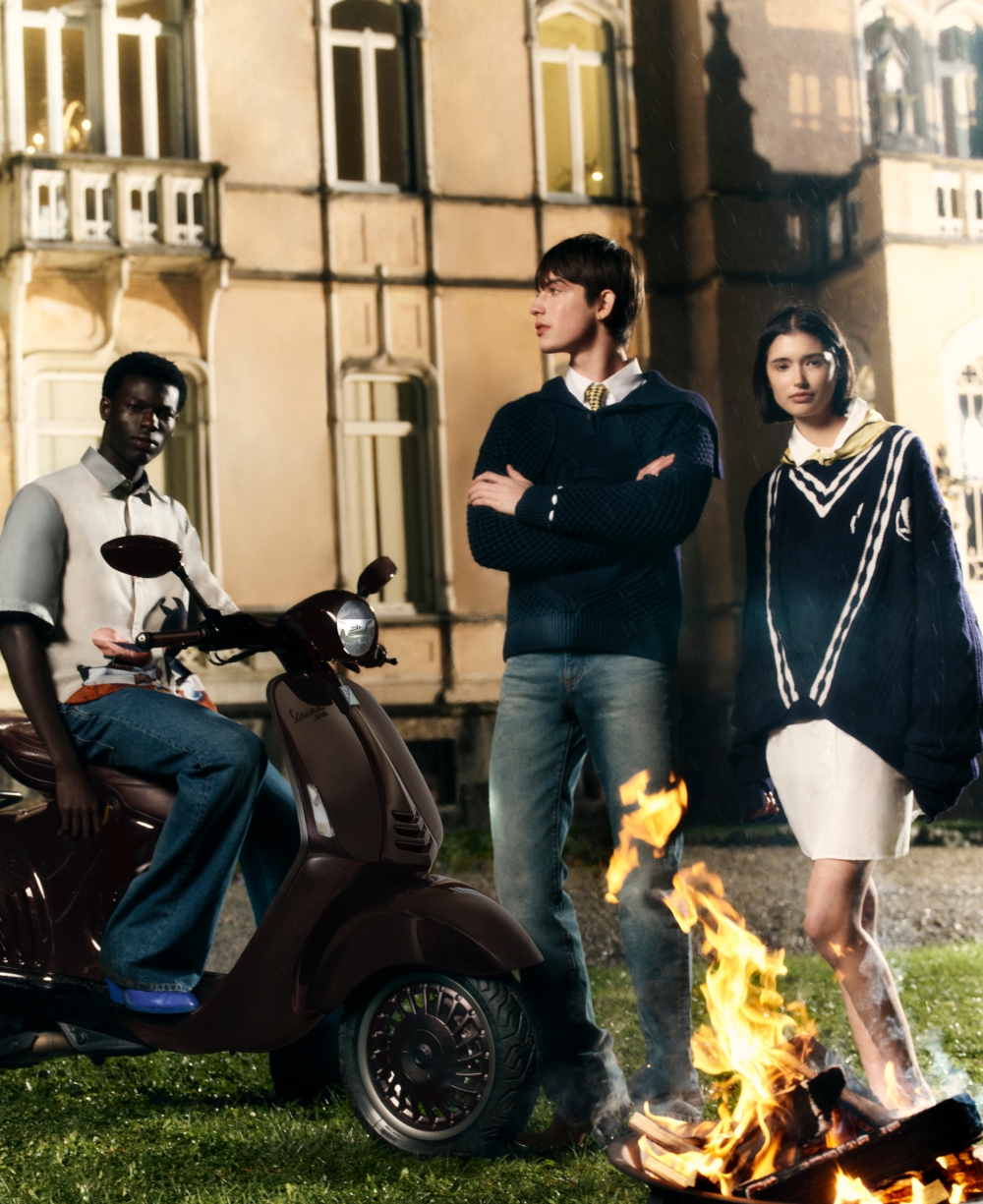 Song hành cùng Vespa 946 Horse là IN SELLA – phiên bản thứ ba của bộ sưu tập thời trang AL VENTO. Bộ sưu tập Capsule này mở ra một chương mới với sự ra đời của Royal crest – thiết kế mới lấy cảm hứng từ kho tư liệu di sản của Vespa, khắc họa hình ảnh chú ngựa và chú chó dachshund đối xứng, được tái hiện bằng ngôn ngữ thiết kế đương đại. Biểu tượng xuất hiện trên áo khoác varsity bằng len, được điểm xuyết bằng những đường thêu chỉ vàng tinh xảo, gợi lên tinh thần vương giả và di sản bền vững của thương hiệu.