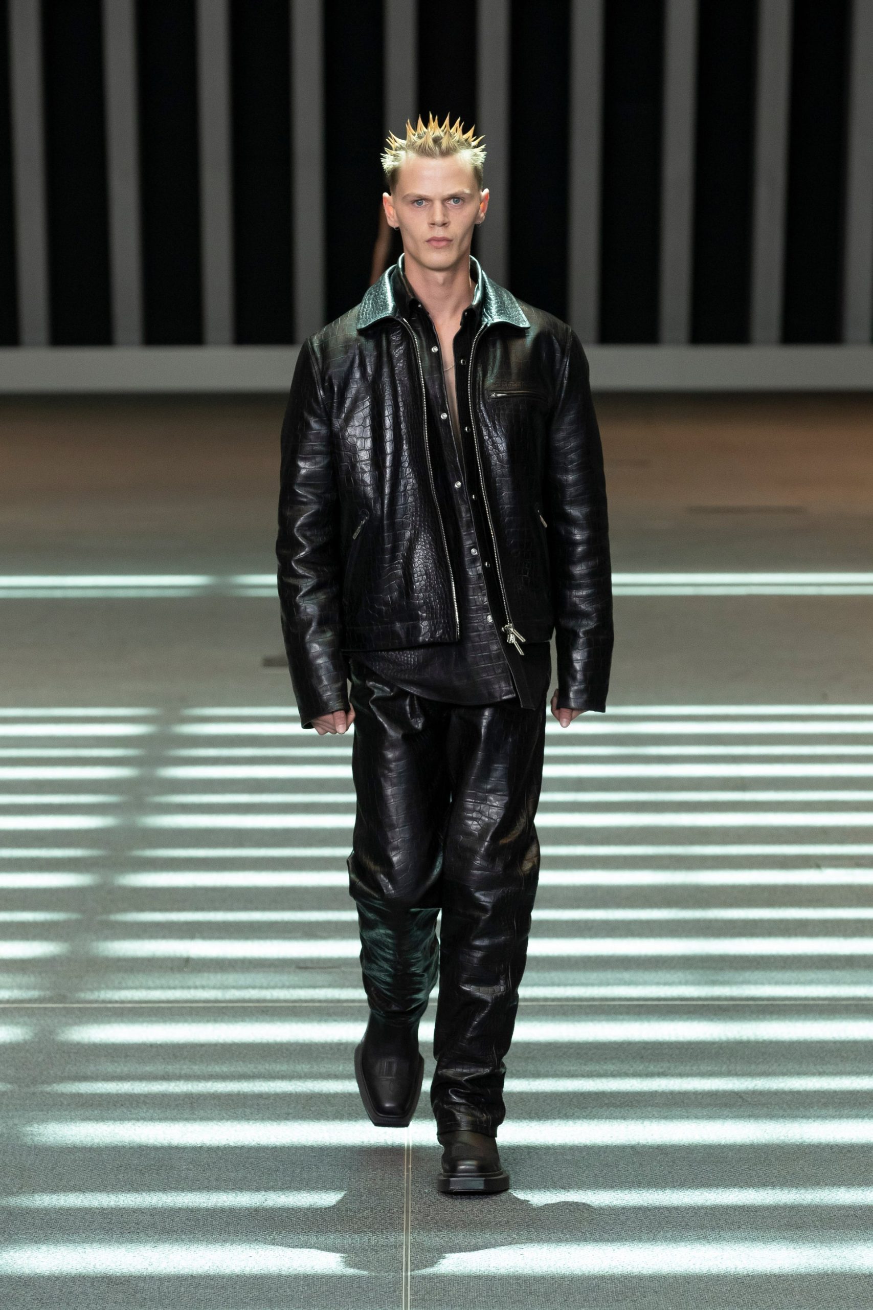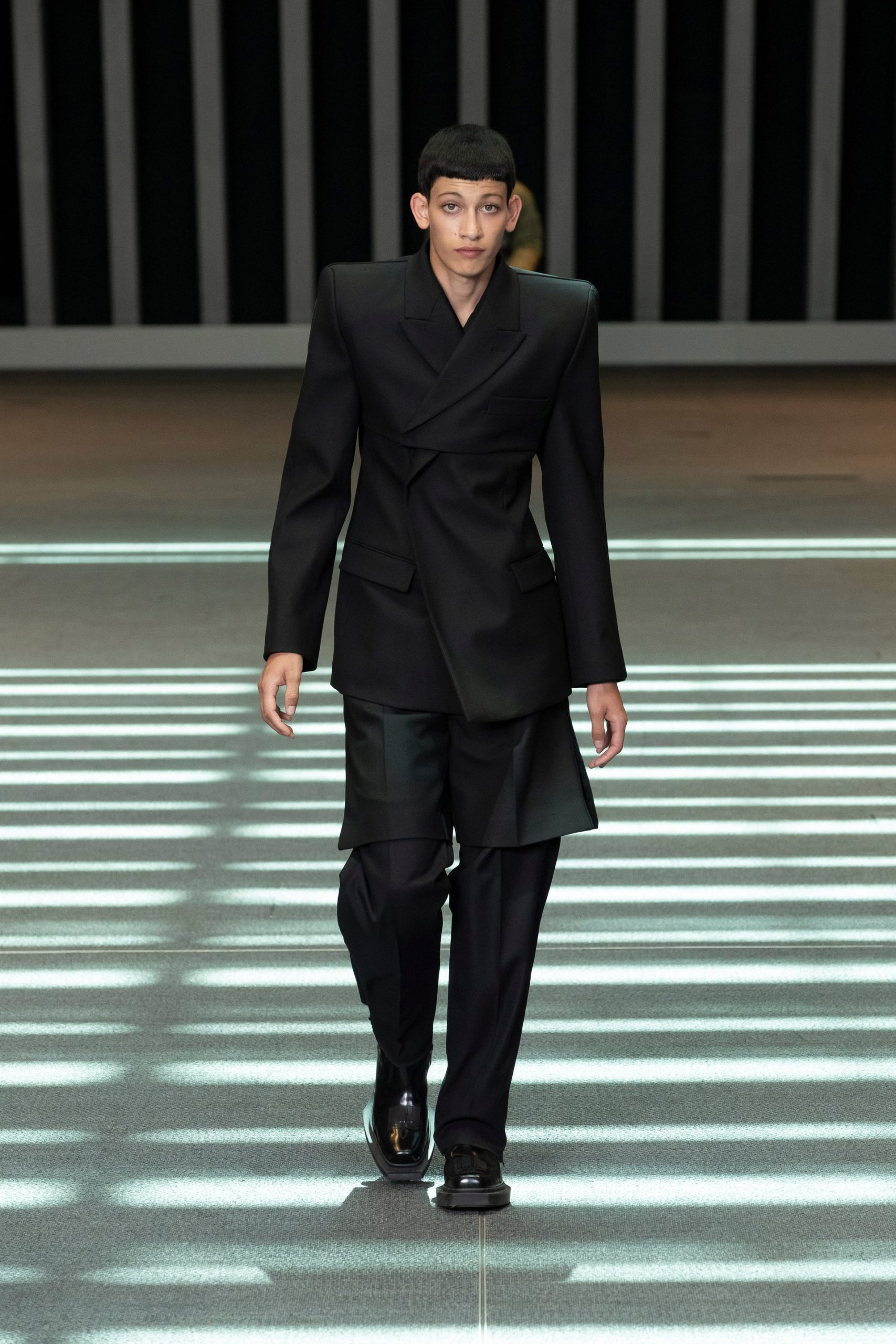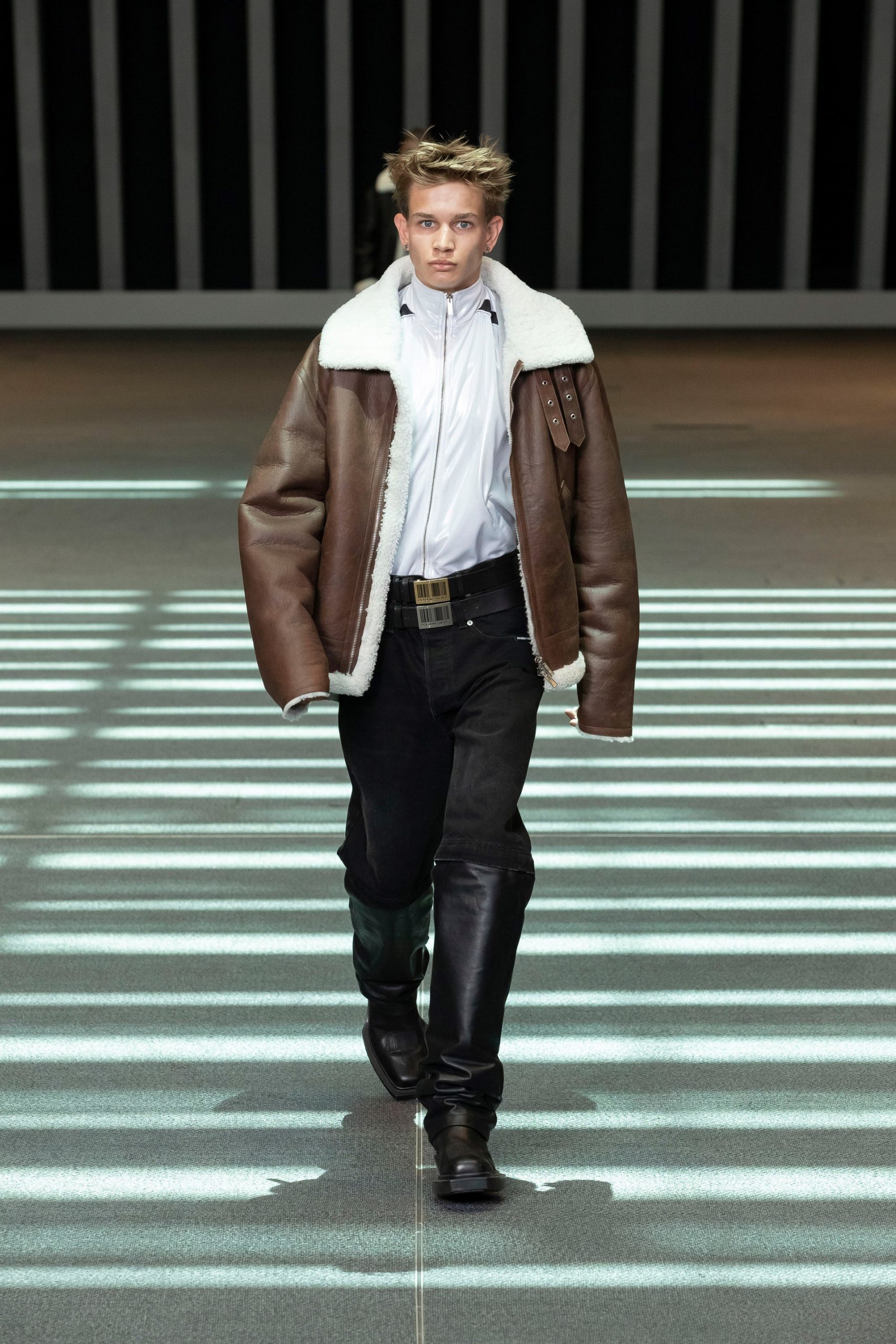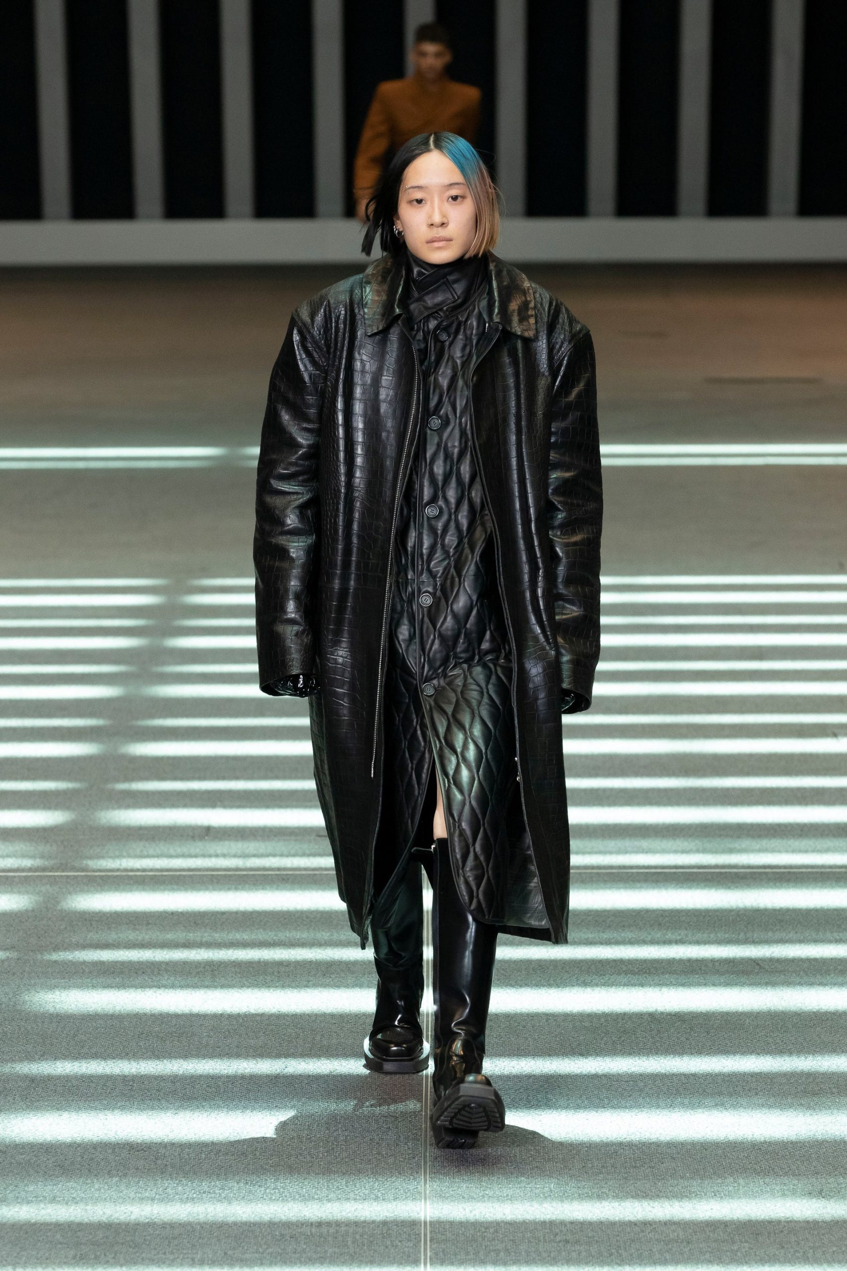 Ngay từ những bộ cánh đầu tiên, câu chuyện bình đẳng giới đã được lột tả thẳng thắn qua các thiết kế áo phom crop top, từ áo thun cho đến các loại áo khoác. Cùng với đó, chúng ta tiếp tục chứng kiến những phom dáng đang làm nên xu hướng giới trẻ hiện tại: thiết kế vai độn đồ sộ, tạo hình hai lớp trên quần da hay các dòng áo khoác, từ các mẫu áo dài kín kẽ đến phom dáng sát nách gai góc. Sự phóng đại trên những món đồ luôn là những phẩm chất đặc trưng trên đồ của VTMNTS.