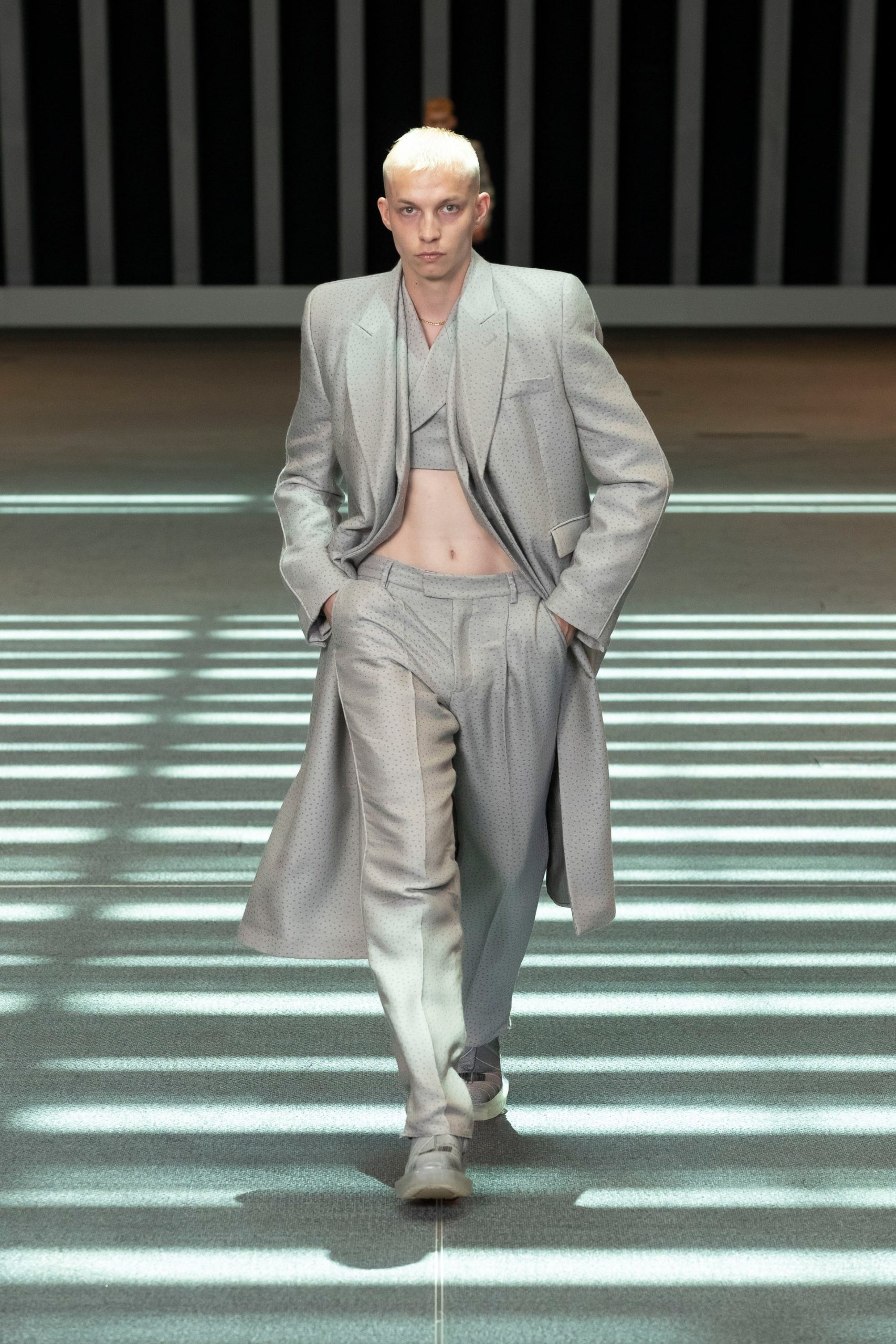 Và cuối cùng, những thiết kế quần áo bằng chấ t liệu ánh bạc lấp lánh, ứng dụng phối màu color block xu thời hay những bộ áo khoác thể thao sặc sỡ là những điểm nhấn giúp hoàn chỉnh nguồn năng lượng trẻ trung của tệp khách hàng mà VTMTNS muốn hướng tới. Một lần nữa, VTMNTS tiếp tục nhấn mạnh sự trỗi dậy mạnh mẽ của những trang phục phi giới tính, được nâng cấp thêm phần tinh tế với kỹ thuật may mặc và con mắt sáng tạo khác biệt của Gvasalia.