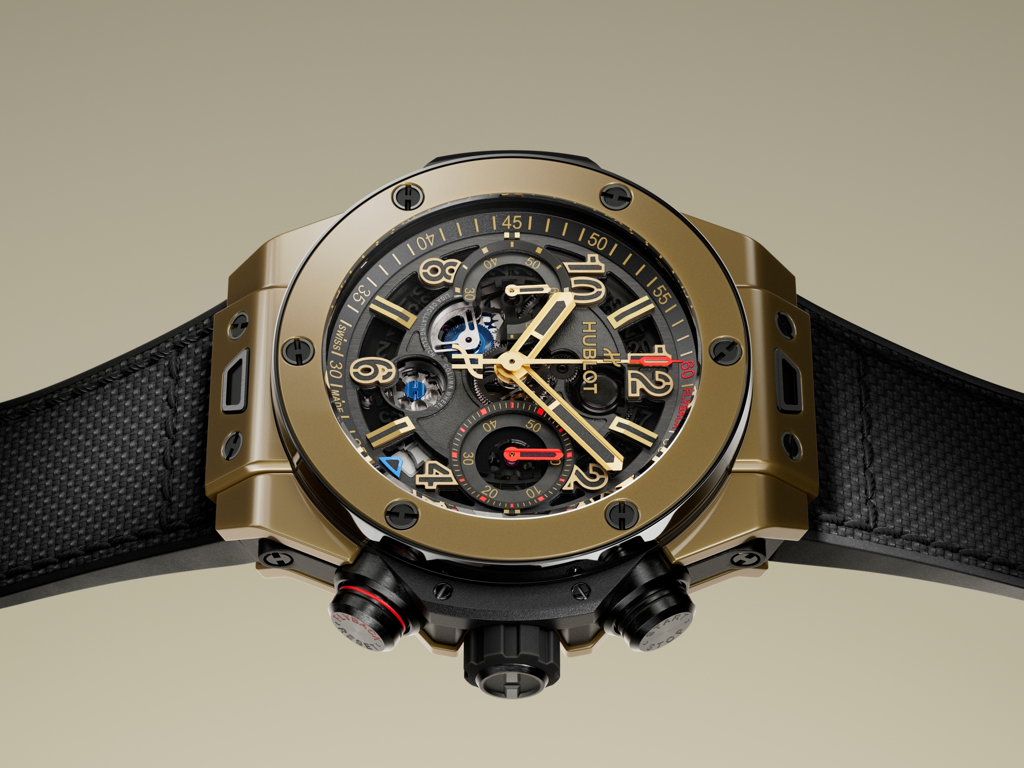 Bộ sưu tập 44 mm được chế tác từ những vật liệu mang tính biểu tượng của Hublot, trong đó nhiều vật liệu đánh dấu các cột mốc quan trọng trong năm 2026. Trong tầm nhìn mới này, bộ máy Unico giữ vai trò trung tâm với màu sắc, độ tương phản và kiến trúc được tăng cường, làm nổi bật cấu trúc chronograph với bánh xe cột đặt ở mặt số và kiến trúc flyback tích hợp.