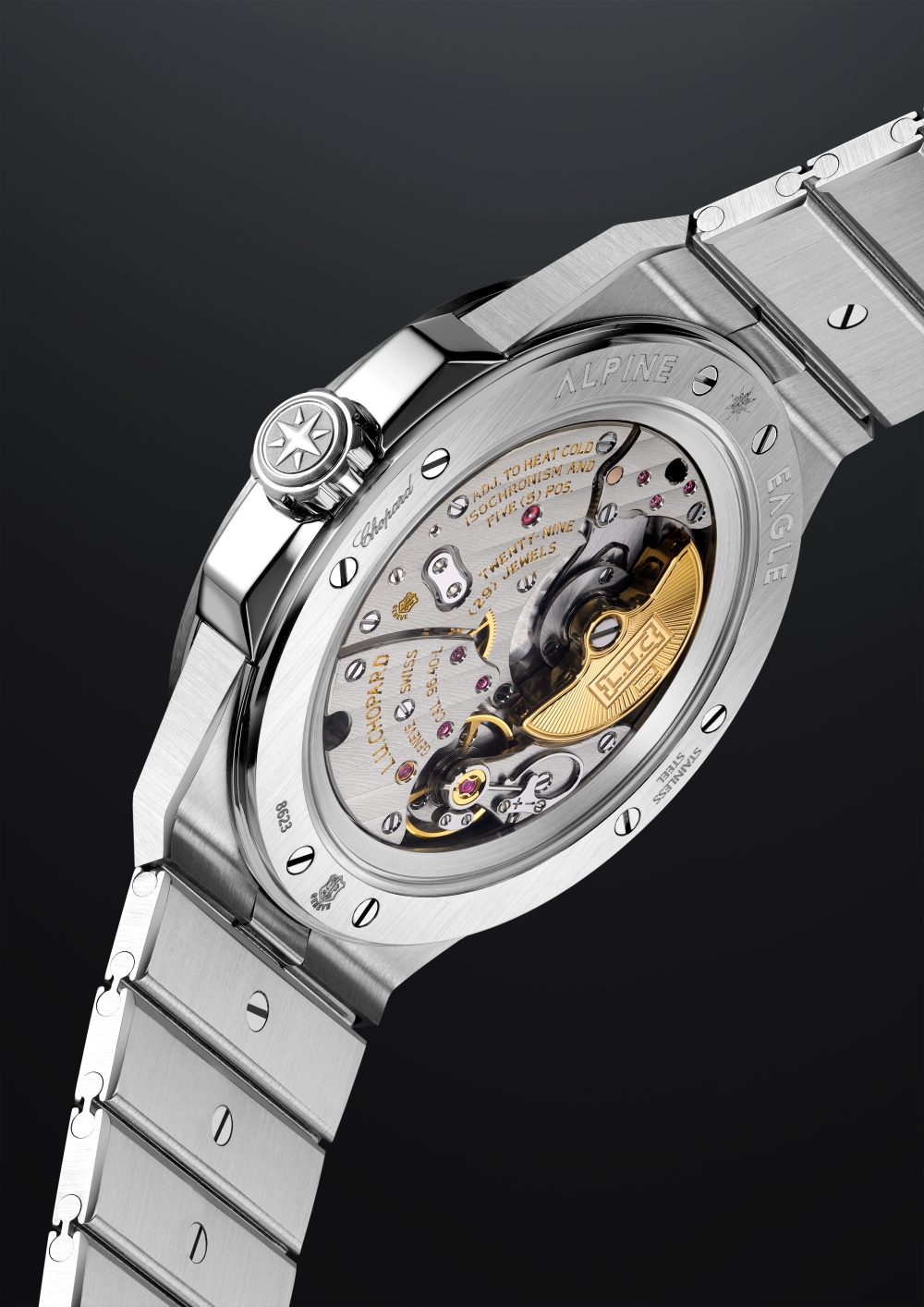 Với độ dày chỉ 3,30 mm, bộ chuyển động này tích hợp một vi rô-tơ lệch tâm bằng vàng đạo đức 22-carat, với quán tính lớn nhằm tối ưu hiệu quả lên cót, truyền động cho hai ổ cót xếp chồng theo công nghệ Chopard Twin, đảm bảo mức dự trữ năng lượng trong 65 giờ. Những công đoạn hoàn thiện xuất sắc và độ chính xác của bộ máy đã giúp chiếc đồng hồ đồng thời đạt chứng nhận Chronometer (COSC) và con dấu chất lượng Poinçon de Genève – một vinh dự hiếm hoi đối với một mẫu đồng hồ bằng thép.