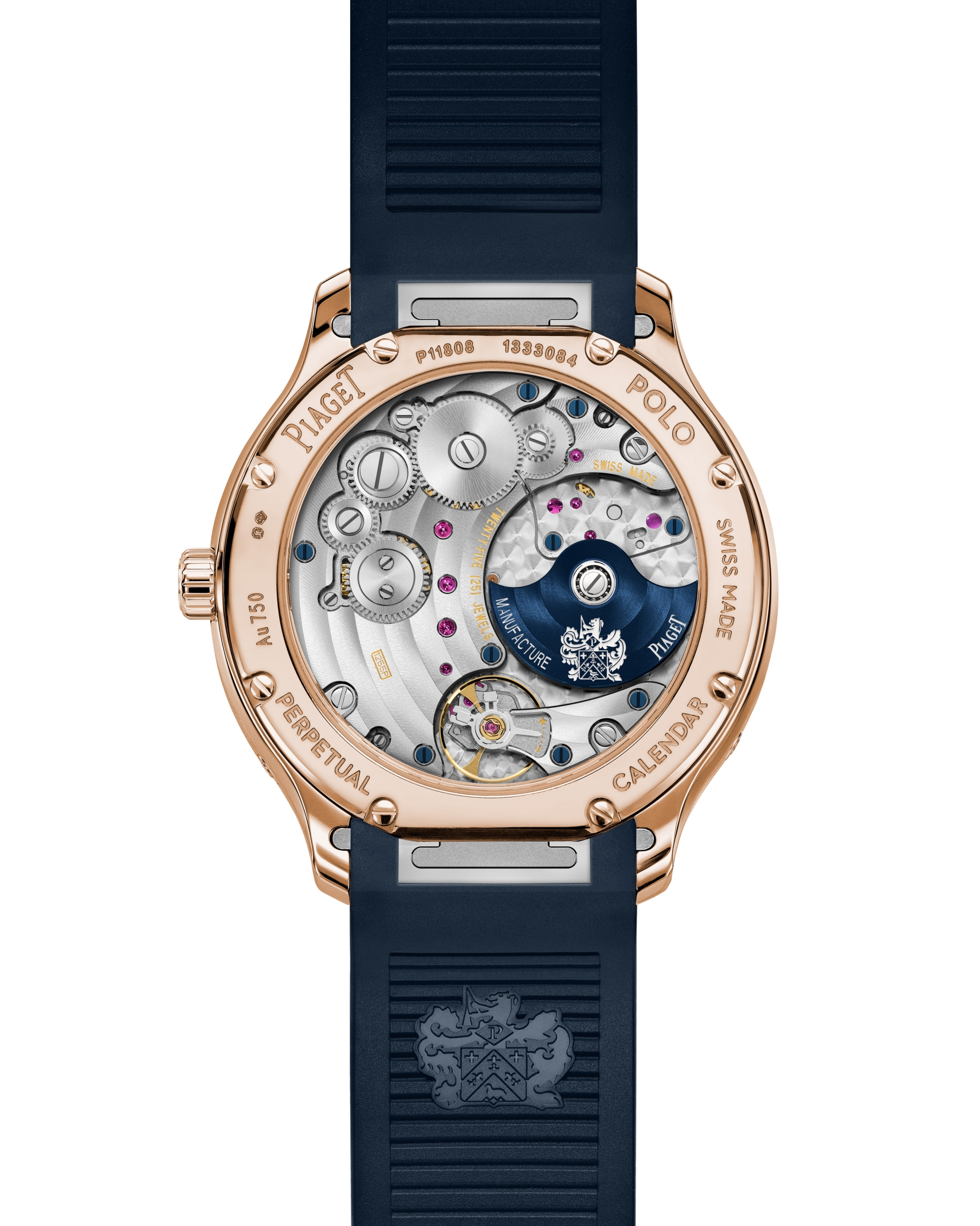 Diện mạo mới này trưng trổ sắc xanh đặc trưng Piaget, đưa sự hoà trộn hình khối hài hoà của bộ sưu tập Piaget Polo Signature – bộ vỏ tròn với các góc bo hình gối – lên một tầm cao mới.
