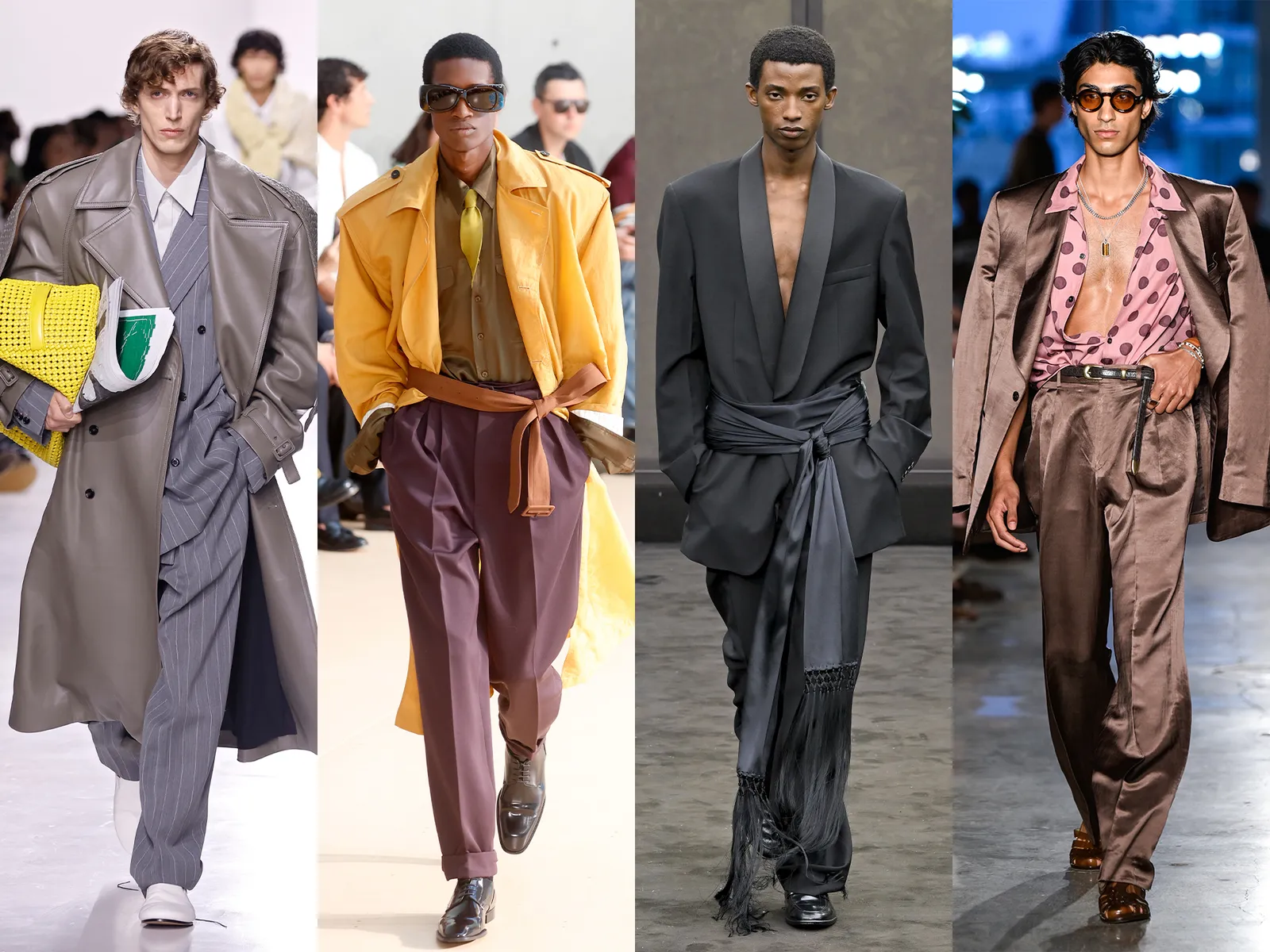 Tại các show diễn của Bottega Veneta và Saint Laurent, phom dáng trang phục với phần vai được mở rộng vượt khỏi cấu trúc cơ bản, tạo nên đường nét mạnh mẽ và dứt khoát cho nam giới. Trong khi đó, Todd Snyder và Ferragamo tiết chế hơn để phù hợp với thị hiếu và mang tính ứng dụng. Điểm chung của các thương hiệu trong các bộ sưu tập nằm ở việc nhấn vào phần thân trên, từ đó tạo hiệu ứng cân đối cho tổng thể. Không mang tinh thần kiểu hình ảnh “quyền lực”, mà là cách xử lý tỷ lệ trang phục giúp vóc dáng nam giới trở nên rõ nét và có điểm nhấn hơn.