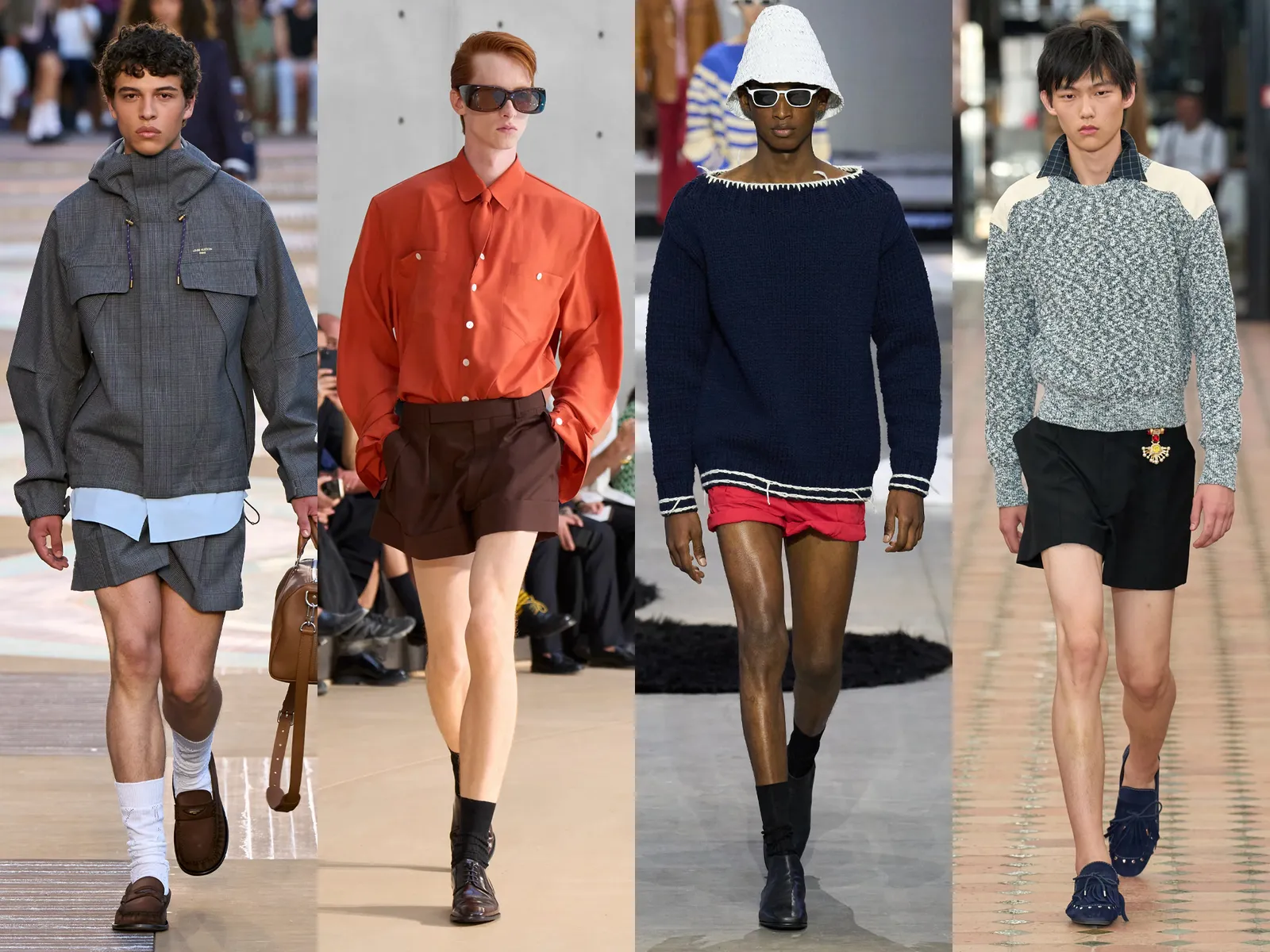 So với mùa mốt trước, quần shorts năm nay mang tinh thần người đàn ông “trưởng thành” hơn. Tại Louis Vuitton và Saint Laurent, thiết kế này được phát triển như một phiên bản biến tấu của chiếc quần tây thông thường, với đường ly sắc nét, phần lưng và gấu quần chi tiết gập chỉn chu. Độ dài thường ở giữa đùi, tạo sự cân bằng giữa tính thanh lịch và tinh thần thoải mái. Thương hiệu Prada và Wales Bonner mang đến cách tiếp cận đời thường hơn khi kết hợp shorts với áo len phong cách thủy thủ hoặc sơ mi flannel. Khi thiết kế quần short được phối cùng tất cao cổ và giày loafer hoặc Oxford, tổng thể của nam giới vẫn giữ được sự gọn gàng và tinh tế.