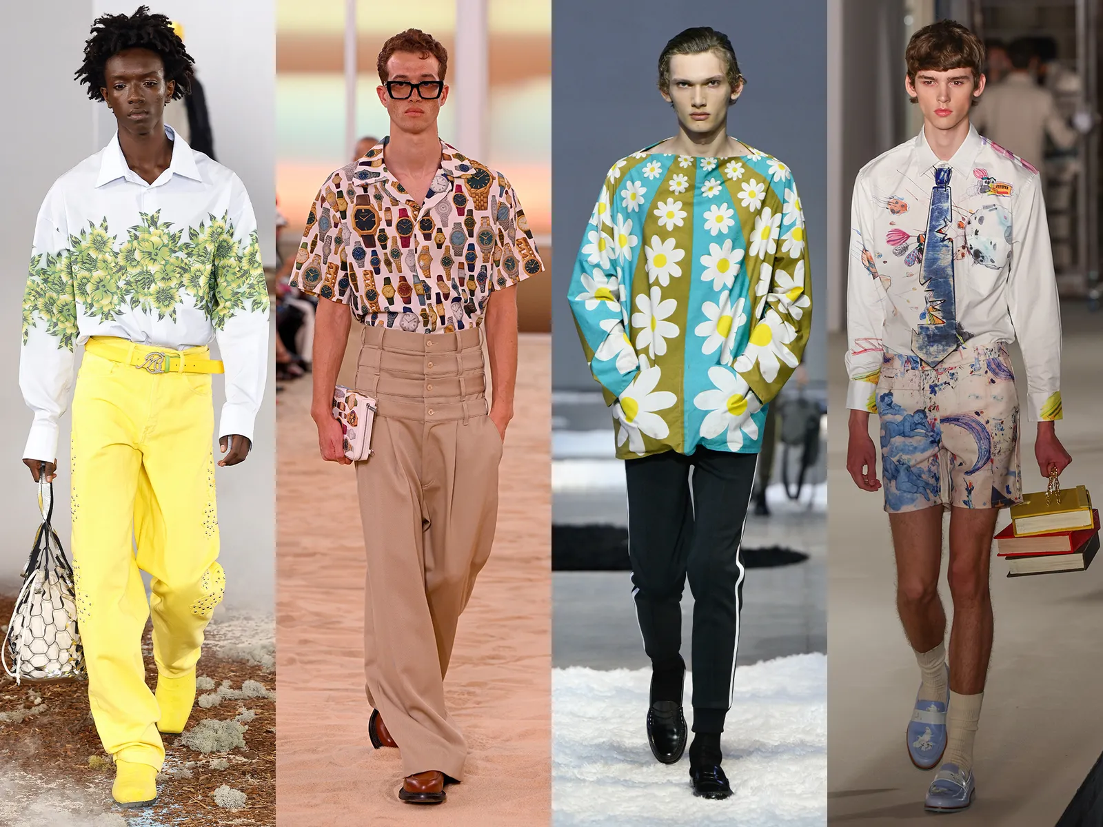 Những chiếc áo sơ mi mùa này không còn dừng ở sự an toàn. Bluemarble, KidSuper và Prada mang đến các họa tiết nổi bật với bảng màu mạnh, hình in biến tấu hay các bản vẽ mang tính siêu thực. Dù có phần phá cách, các thiết kế vẫn được đội ngũ sáng tạo để không trở nên quá phô trương. Đây là cách đưa yếu tố cá tính vào trang phục mà vẫn giữ được sự cân bằng.